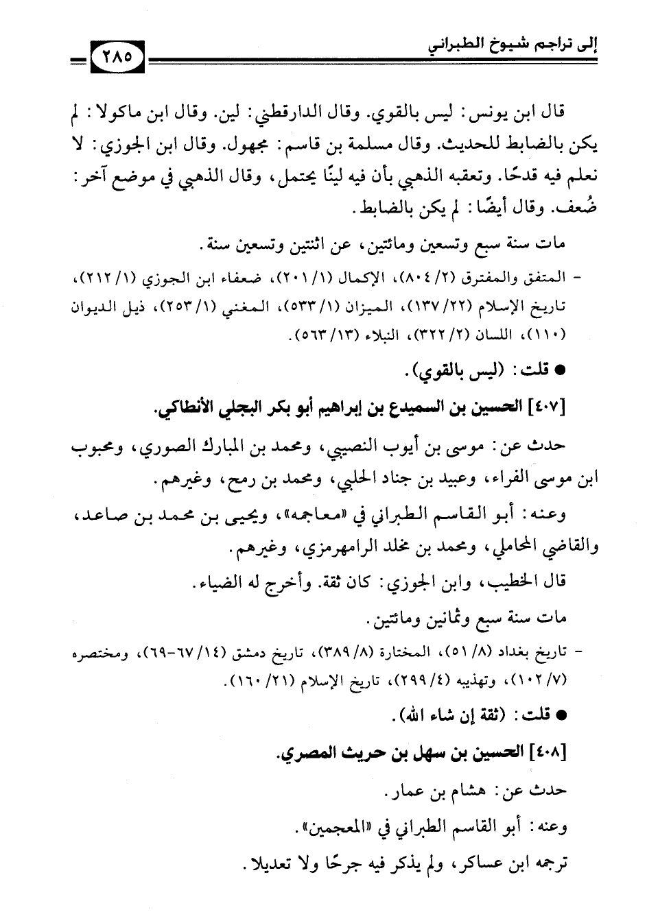 [407] الحسين بن السميدع بن إبراهيم أبو بكر البجلي الأنطاكي.