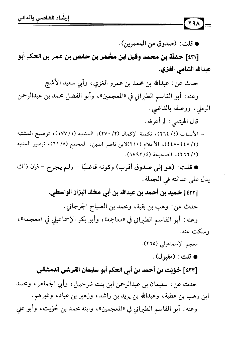 * قلت: (هو إلى صدوق أقرب) وكونه قاضيًا- ولم يجرح – فإن ذلك يدل على عدالته في الجملة.