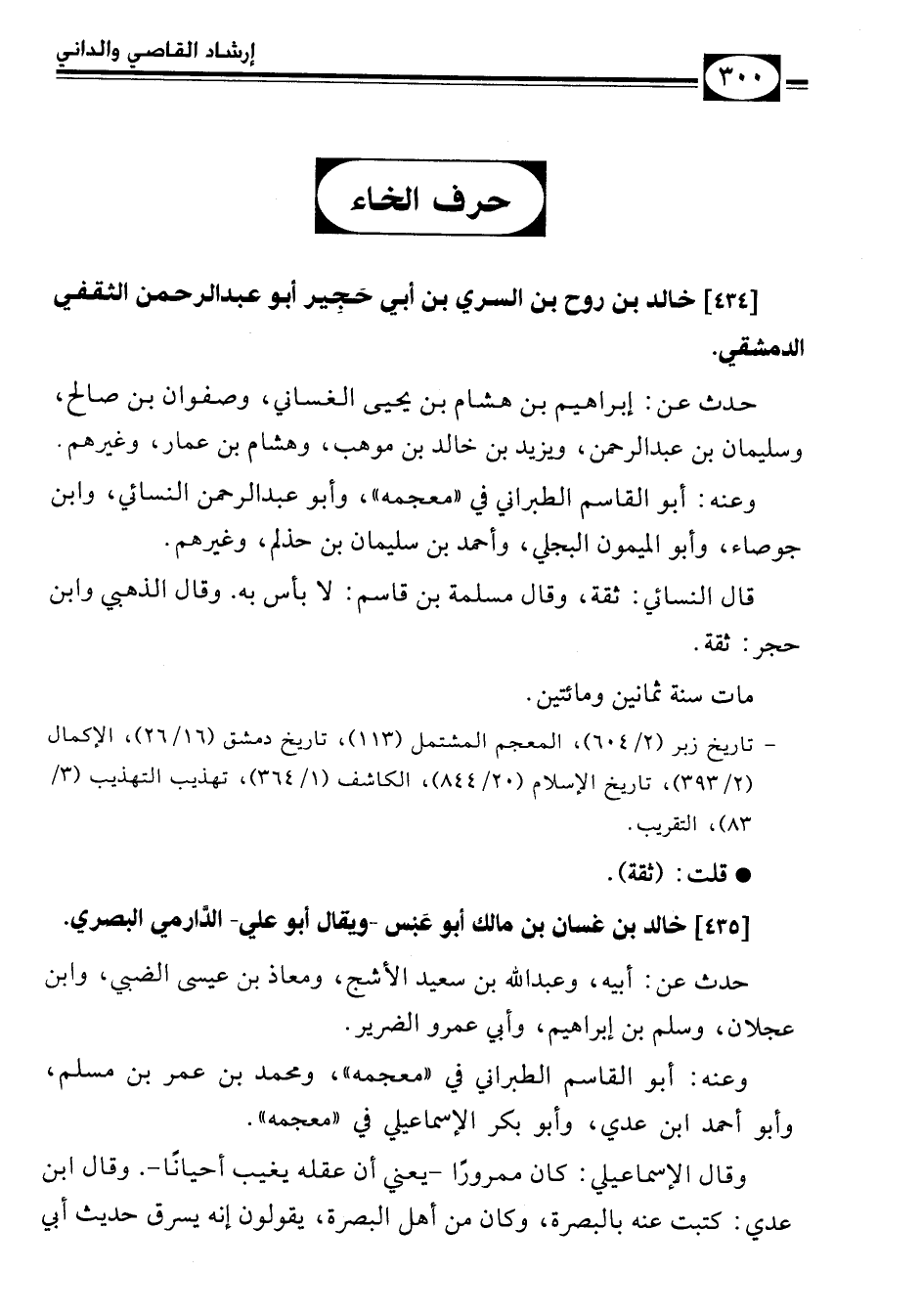 [434] خالد بن روح بن السري بن أبي حَجِير أبو عبد الرحمن الثقفي الدمشقي.