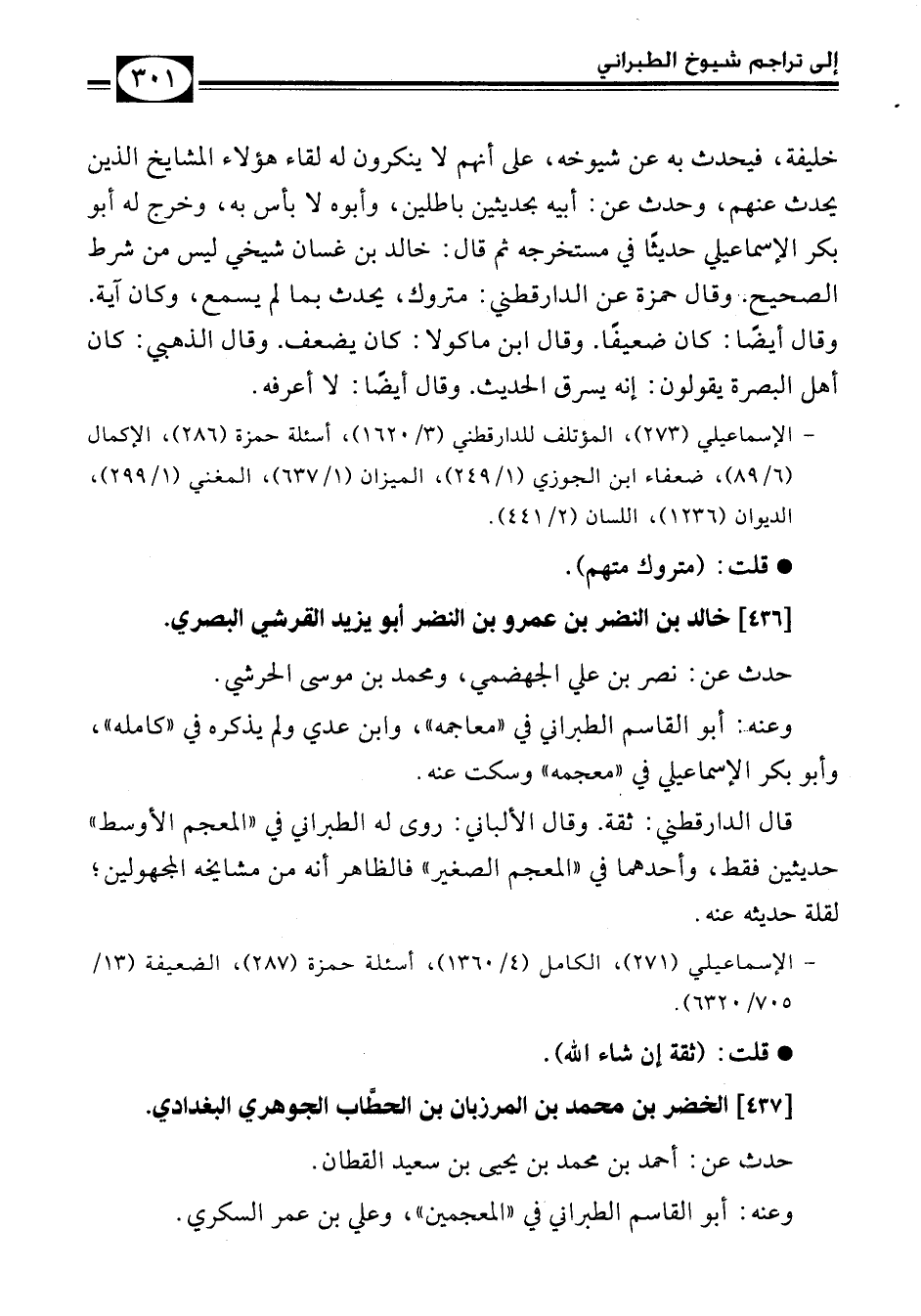 [436] خالد بن النضر بن عمرو بن النضر أبو يزيد القرشي البصري.
