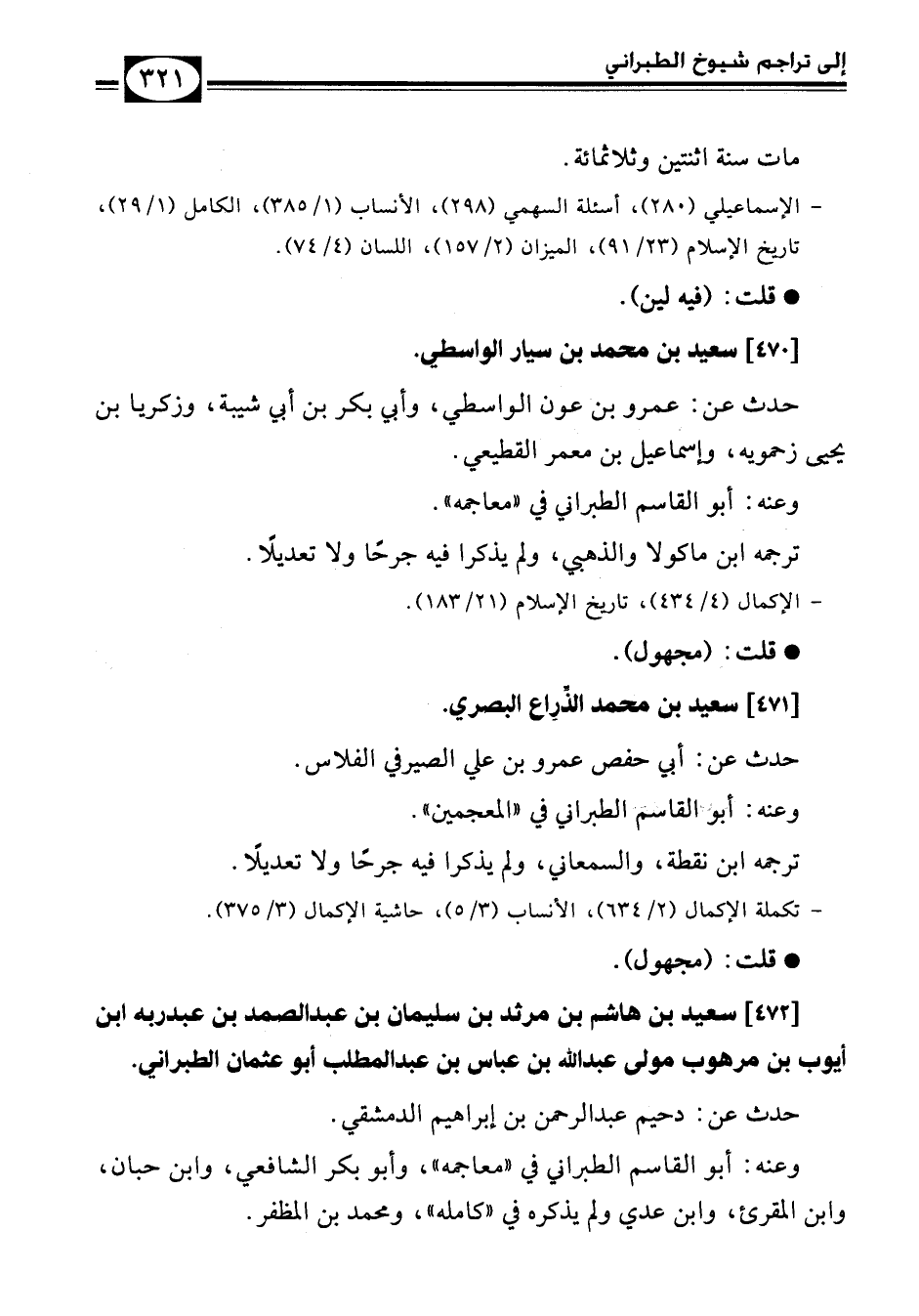 [472] سعيد بن هاشم بن مرثد بن سليمان بن عبد الصمد بن عبد ربه بن أيوب بن مرهوب مولى عبد الله بن عباس بن عبد المطلب أبو عثمان الطبراني.