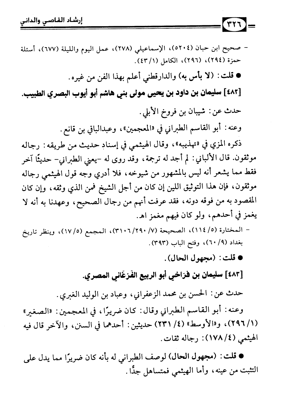• قلت (مجهول الحال) لوصف الطبراني له بأنه كان ضريرًا مما يدل على التثبت من عينه، وأما الهيثمي فمتساهل جدًا.
