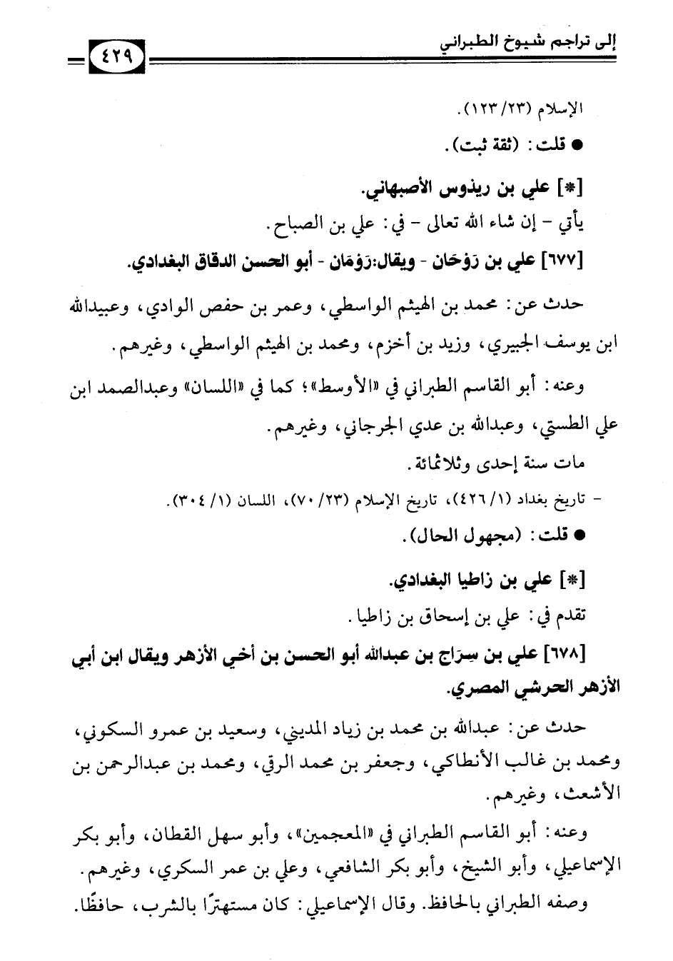 - تاريخ بغداد (1/ 426)، تاريخ الإسلام (23/ 70)، اللسان (1/ 304)