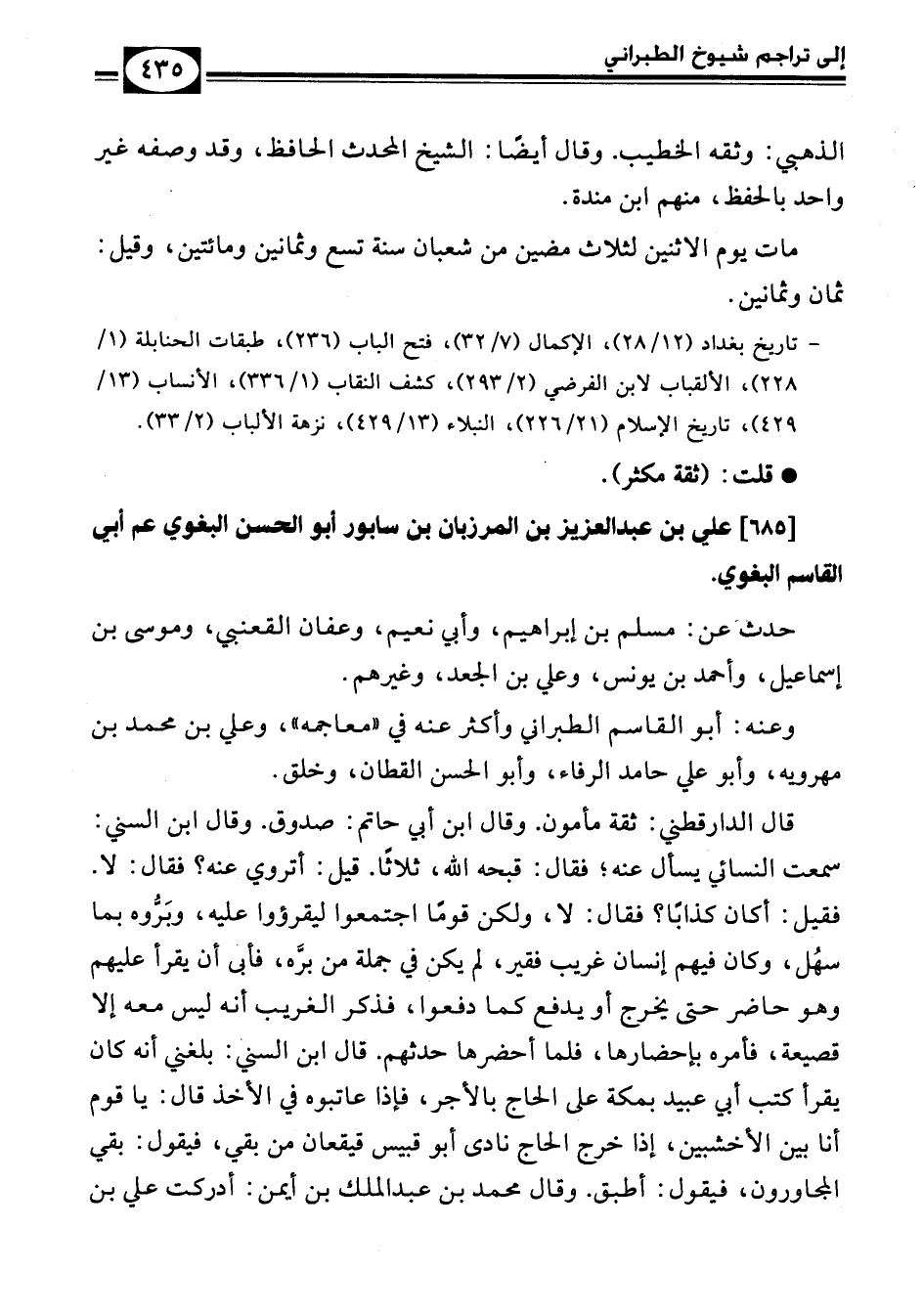 [685] علي بن عبد العزيز بن المرزبان بن سابور أبو الحسن البغوي عم أبي القاسم البغوي.