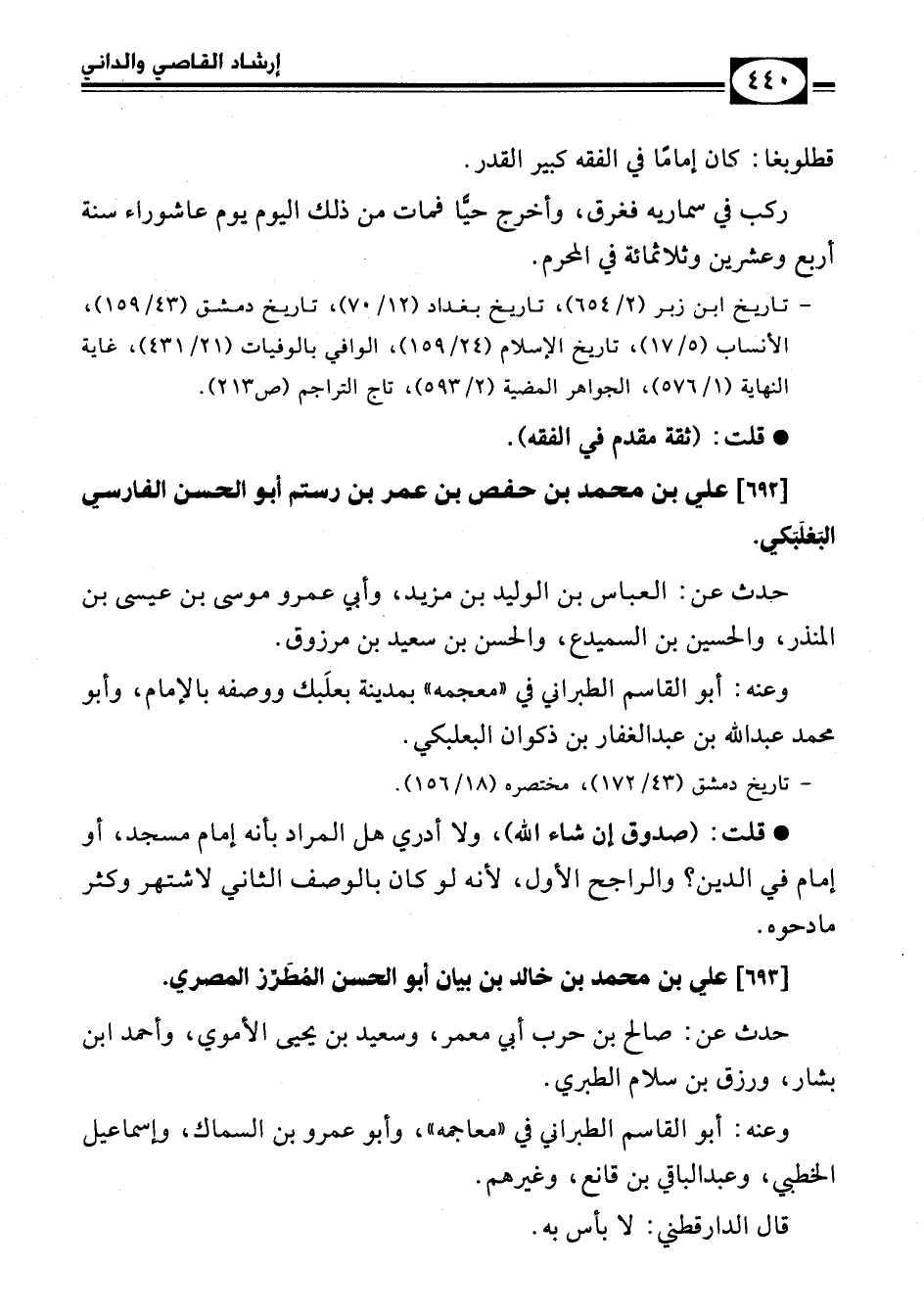 - تاريخ ابن زبر (2/ 654)، تاريخ بغداد (12/ 70)، تاريخ دمشق (43/ 159)، الأنساب (5/ 17)، تاريخ الإسلام (24/ 159)، الوافي بالوفيات (21/ 431)، غاية النهاية (1/ 576)، الجواهر المضية (2/ 593)، تاج التراجم (ص 213).