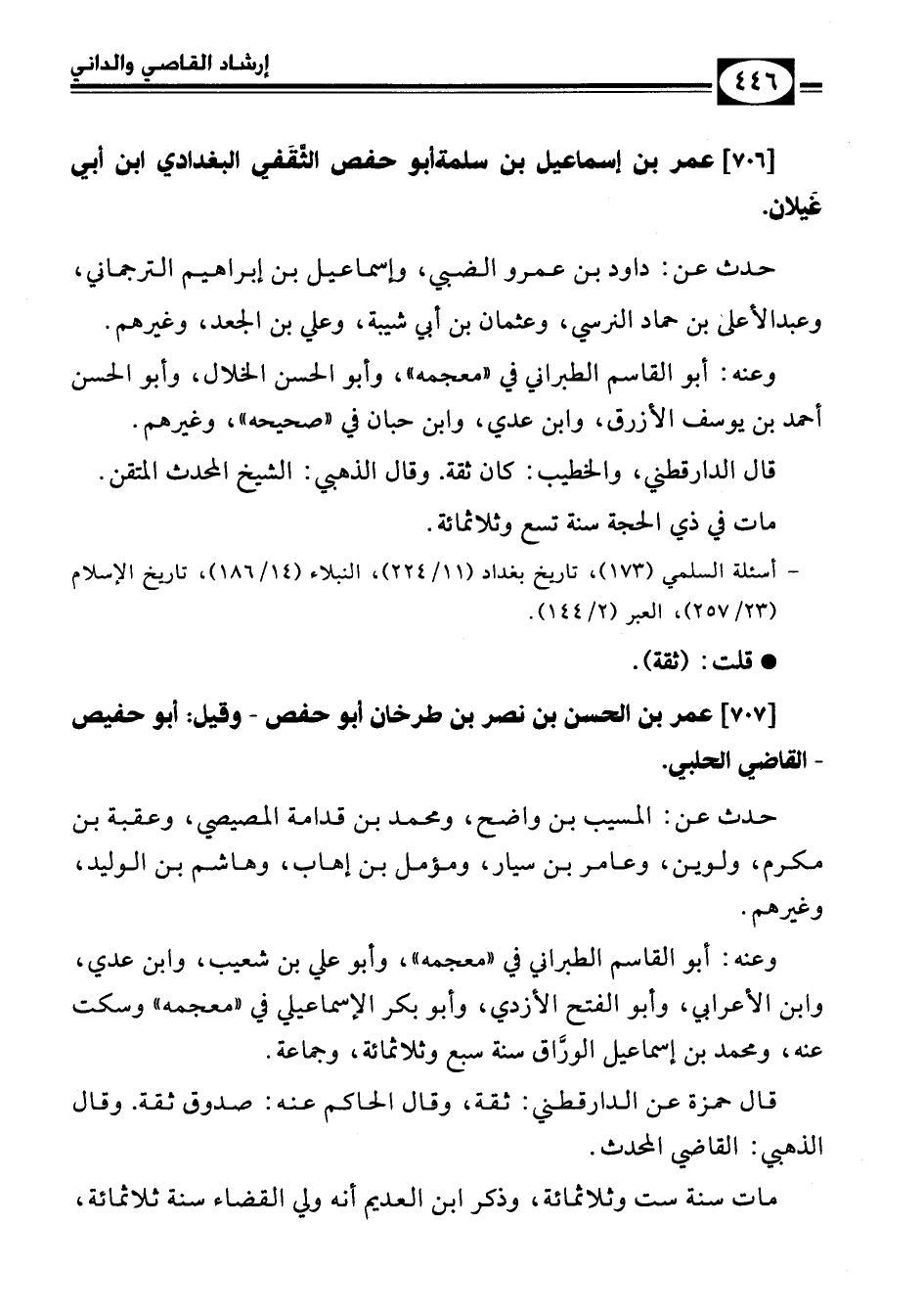 [707] عمر بن الحسن بن نصر بن طرخان أبو حفص – وقيل: أبو حفيص القاضي الحلبي.