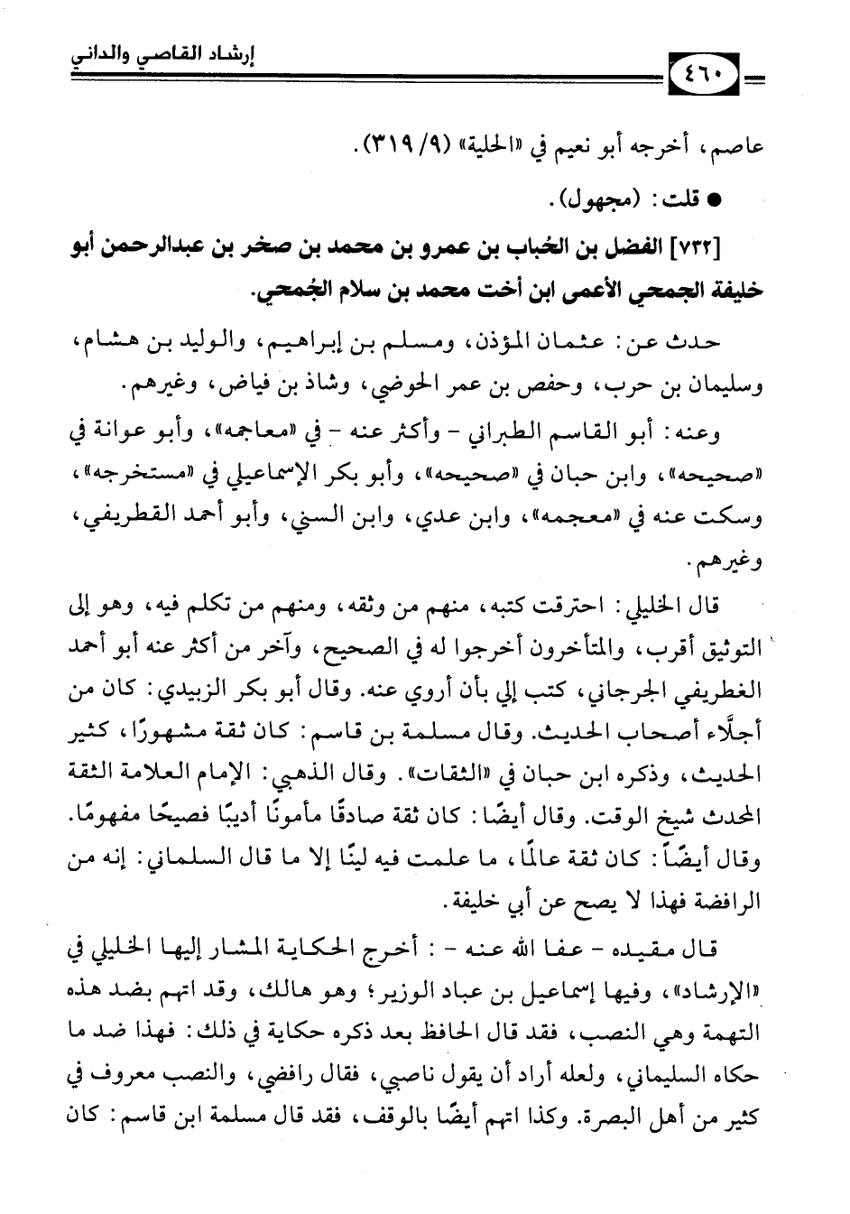 [732] الفضل بن الحباب بن عمرو بن محمد بن صخر بن عبد الرحمن أبو خليفة الجمحي الأعمى ابن أخت محمد بن سلام الجمحي.