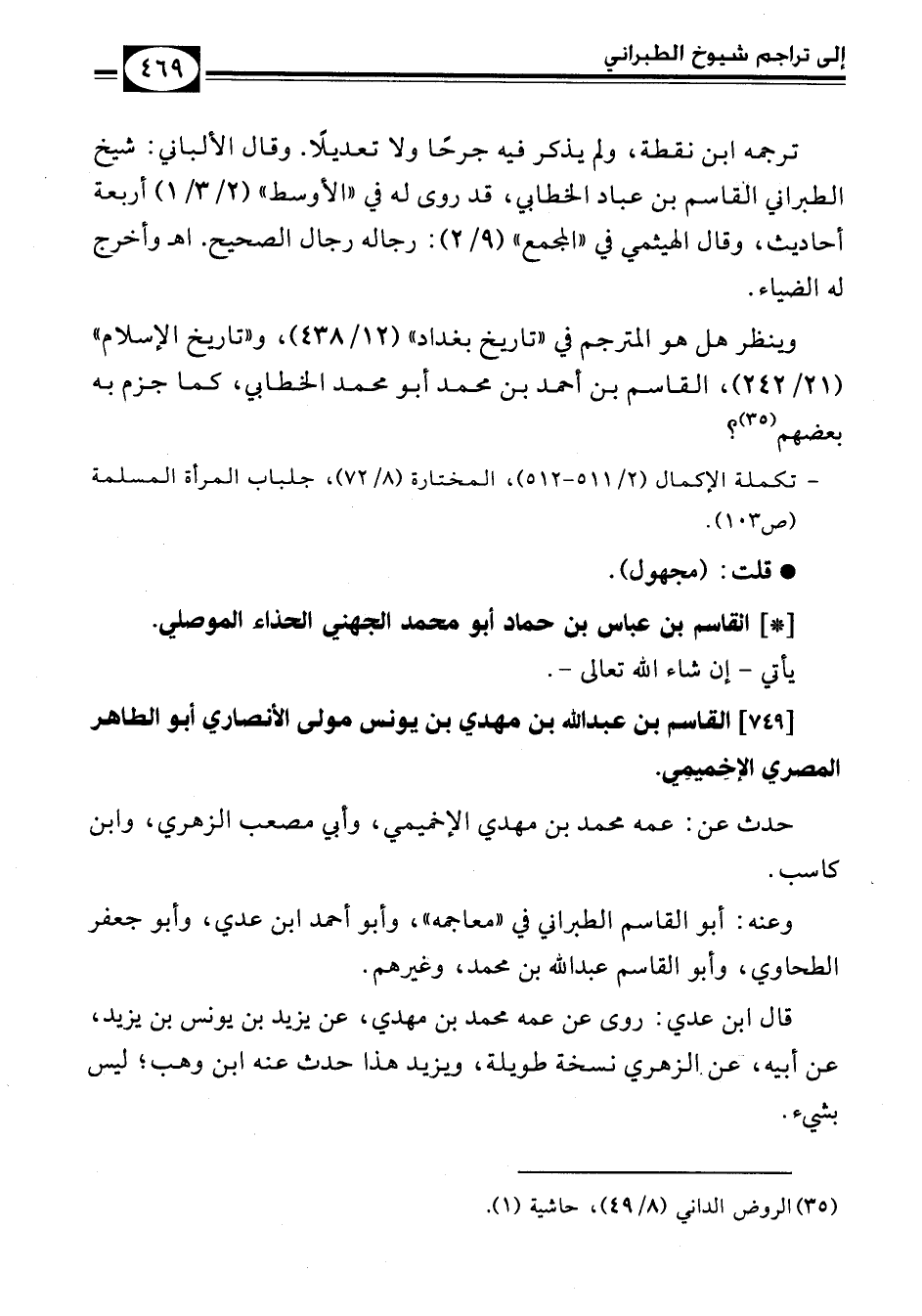 - تكملة الإكمال (2/ 511 - 512)، المختارة (8/ 72)، جلباب المرأة المسلمة (ص 103).