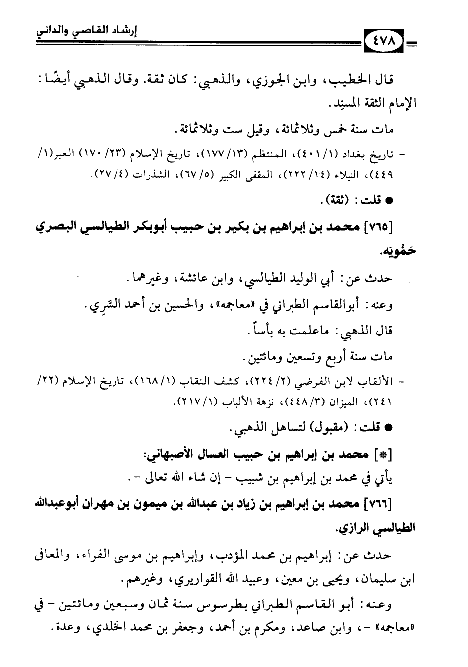 - تاريخ بغداد (1/ 401)، المنتظم (13/ 177)، تاريخ الإسلام (23/ 170)، العبر (1/ 449)، النبلاء (14/ 222)، المقفى الكبير (5/ 67)، الشذرات (4/ 27).