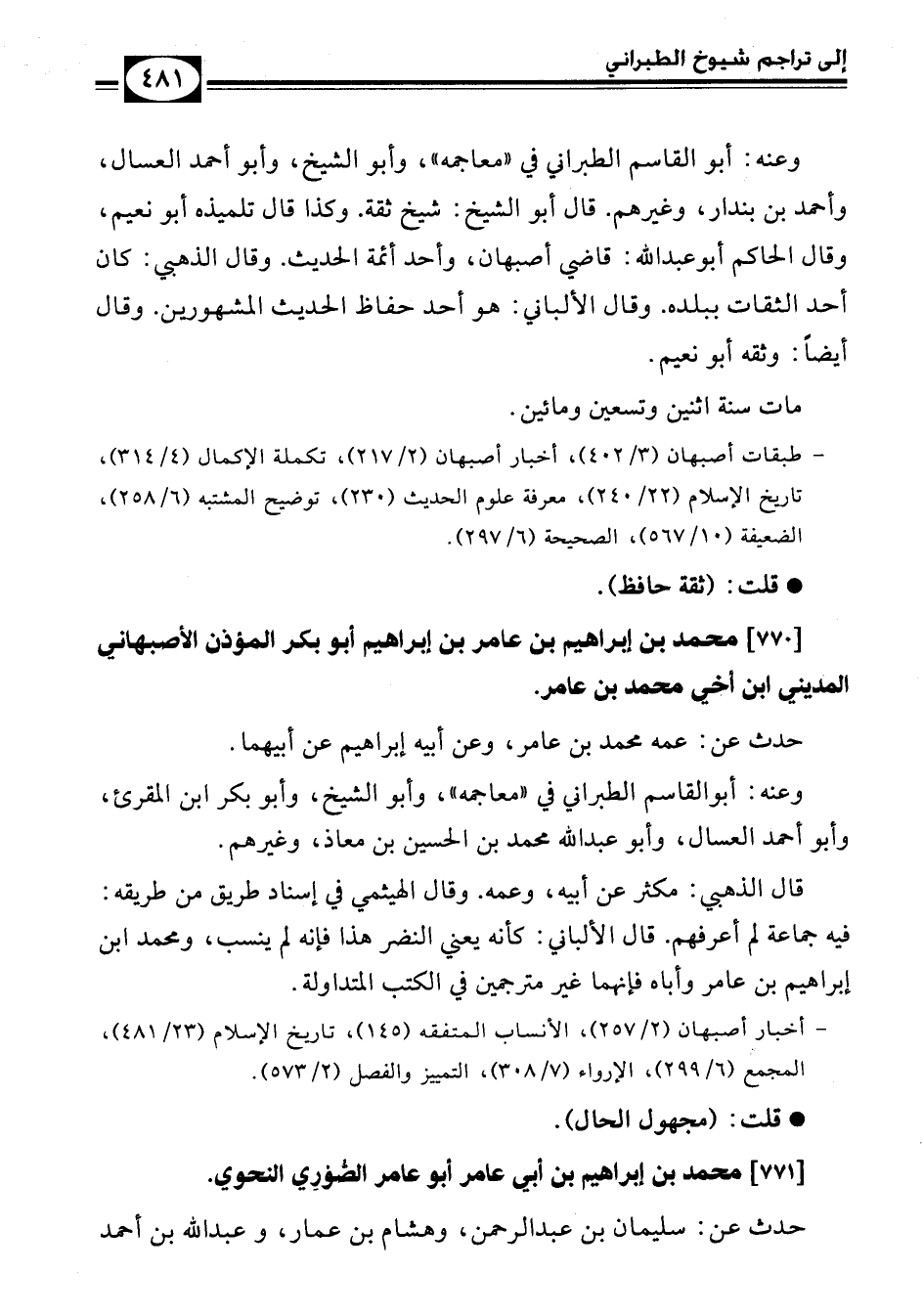 - أخبار أصبهان (2/ 257)، الأنساب المتفقة (145)، تاريخ الإسلام (23/ 481)، المجمع (6/ 299)، الإرواء (7/ 308)، التمييز والفصل (2/ 573).