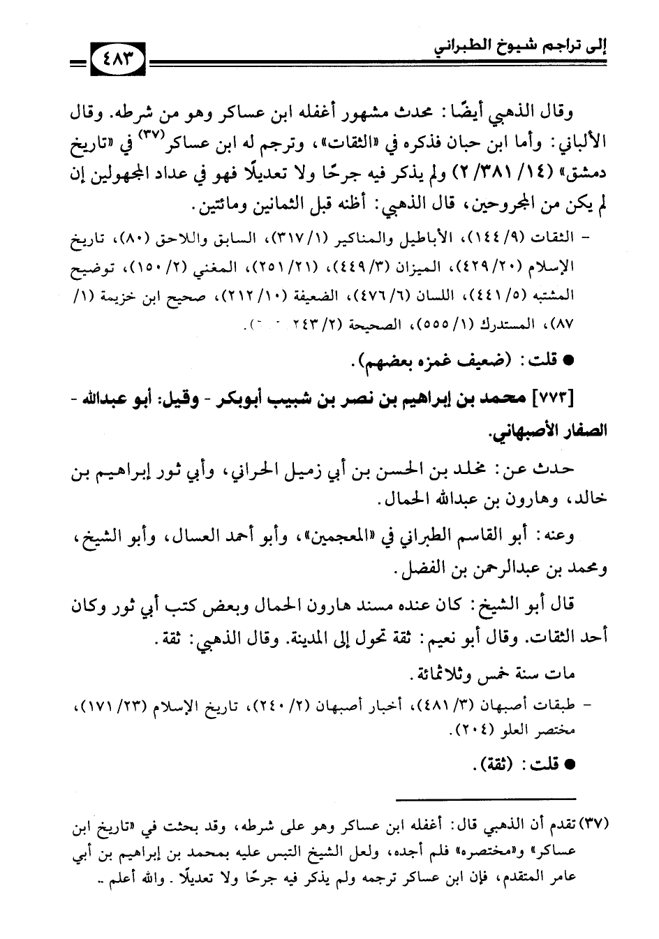 [773] محمد بن إبراهيم بن نصر بن شبيب أبو بكر – وقيل: أبو عبد الله – الصفار الأصبهاني.
