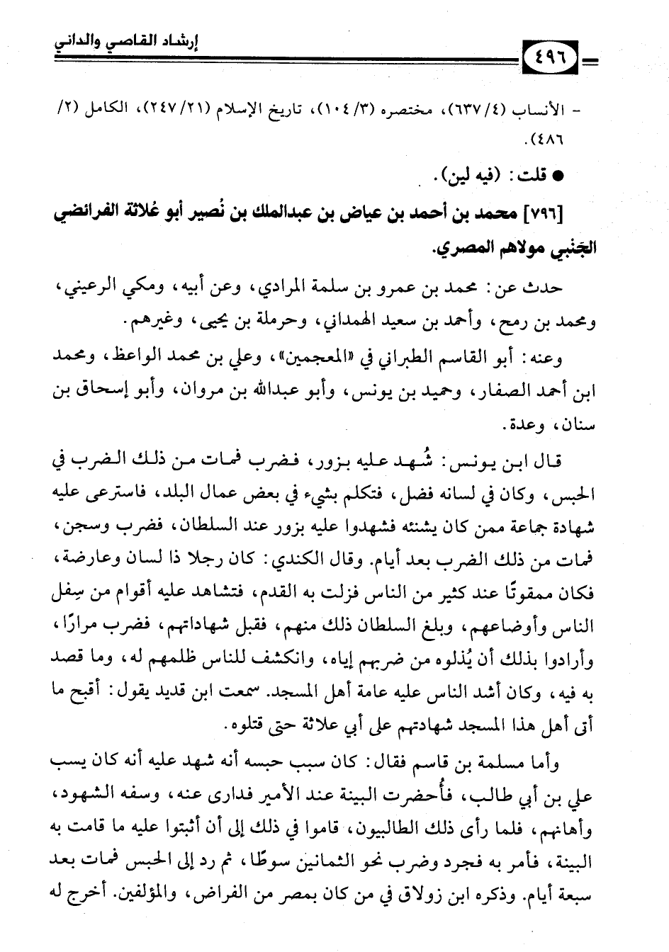 [796] محمد بن أحمد بن عياض بن عبد الملك بن نصير أبو علاثة الفرائضي الجنبي مولاهم المصري.