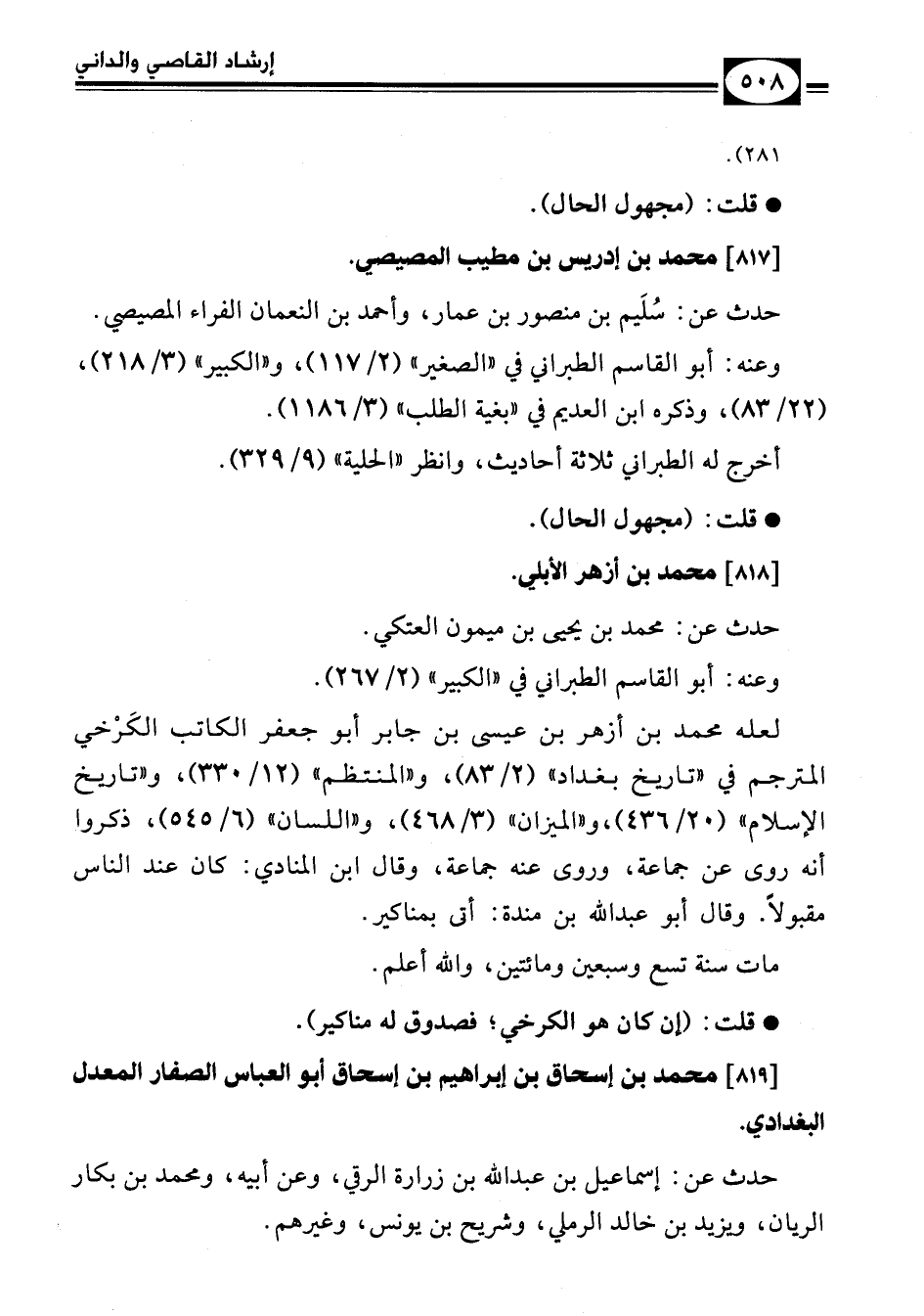 [819] محمد بن إسحاق بن إبراهيم بن إسحاق أبو العباس الصفار المعدل البغدادي.