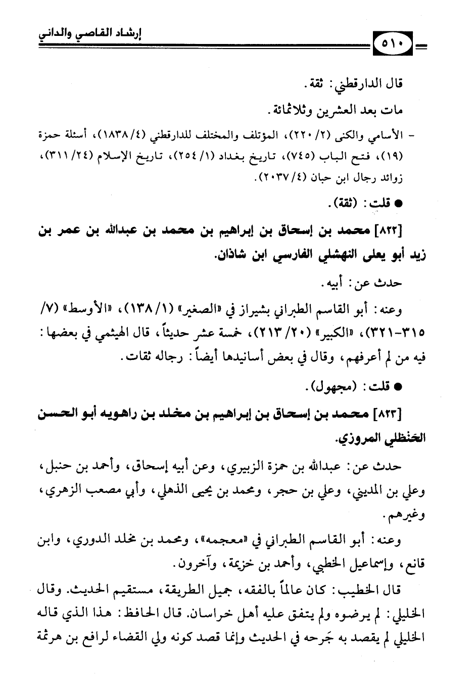 [822] محمد بن إسحاق بن إبراهيم بن محمد بن عبد الله بن عمر بن زيد أبو يعلى النهشلي الفارسي ابن شاذان.