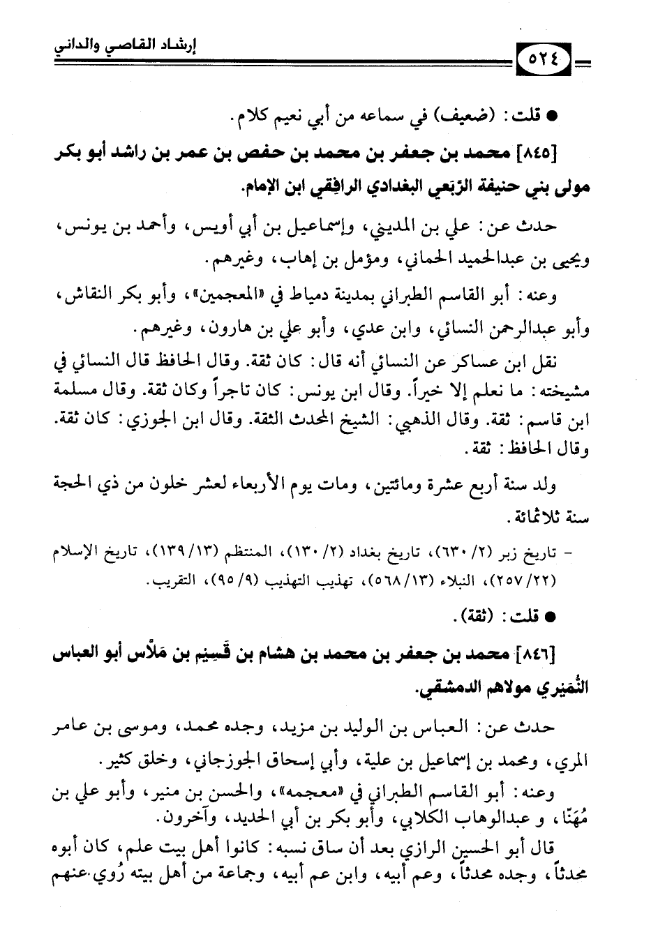 [845] محمد بن جعفر بن محمد بن حفص بن عمر بن راشد أبو بكر مولى بني حنيفة الرَّبْعي البغدادي الرافِقي ابن الإمام.