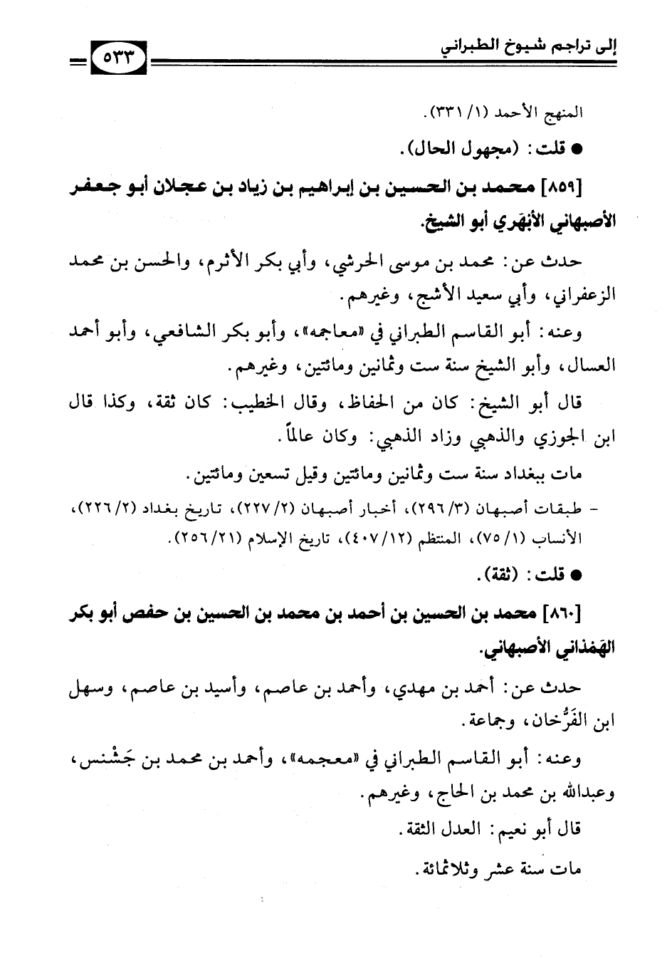 [859] محمد بن الحسين بن إبراهيم بن زياد بن عجلان أبو جعفر الأصبهاني الأبْهَري أبو الشيخ.