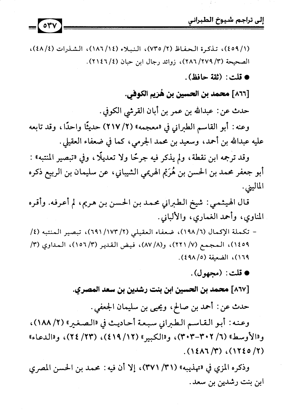 وقد ترجمه ابن نقطة، ولم يذكر فيه جرحًا ولا تعديلاً، وفي «تبصير المنتبه»: أبو جعفر محمد بن الحسن بن هُرَيم الهريمي الشيباني، عن سليمان بن الربيع ذكره الماليني.