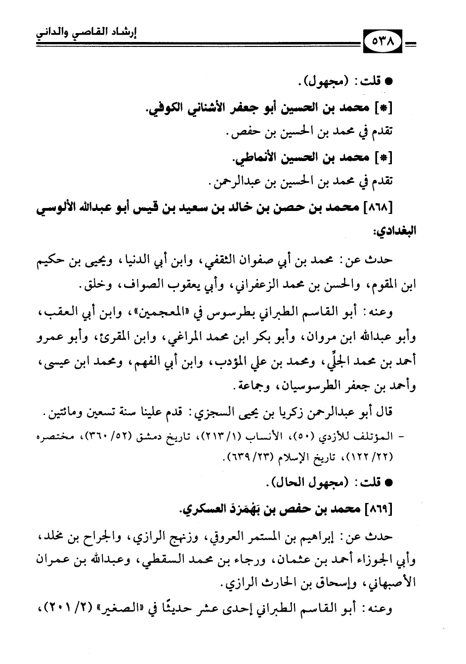 [868] محمد بن حصن بن خالد بن سعيد بن قيس أبو عبد الله الألوسي البغدادي.