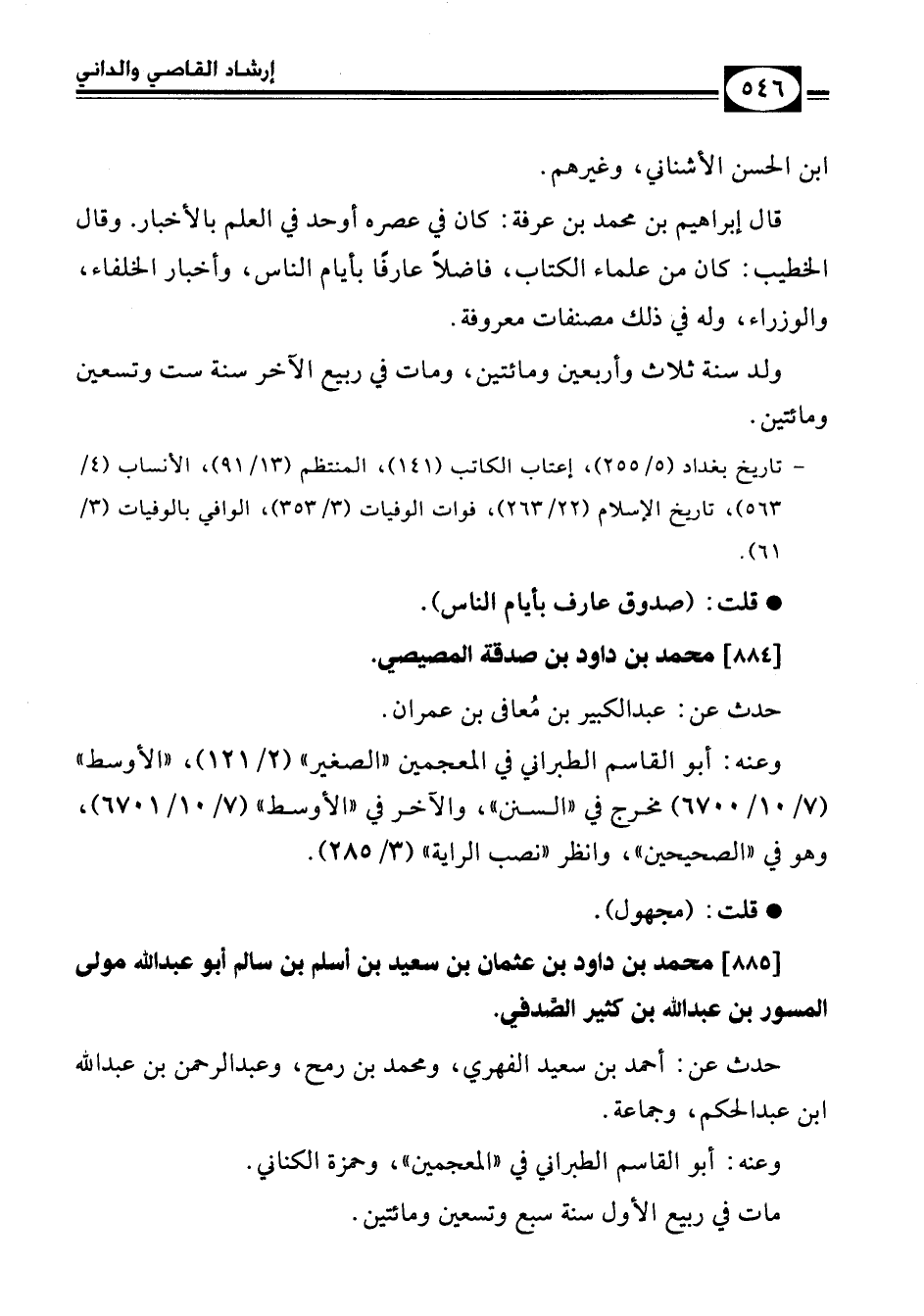 [885] محمد بن داود بن عثمان بن سعيد بن أسلم بن سالم أبو عبد الله مولى المسور بن عبد الله بن كثير الصدفي.