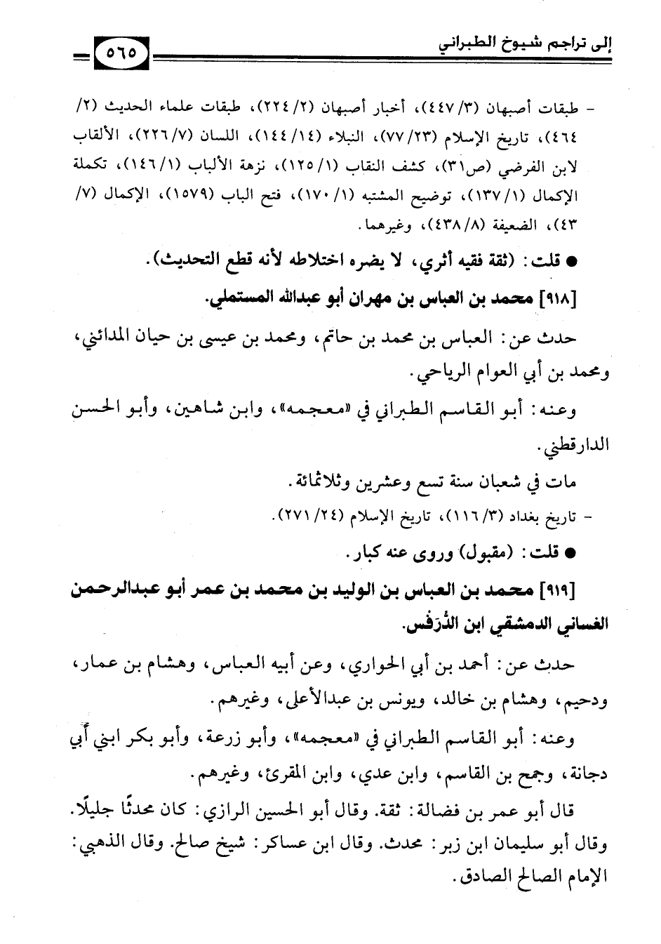 - طبقات أصبهان (3/ 447)، أخبار أصبهان (2/ 224)، طبقات علماء الحديث (2/ 464)، تاريخ الإسلام (23/ 77)، النبلاء (14/ 144)، اللسان (7/ 226)، الألقاب لابن الفرضي (ص31)، كشف النقاب (1/ 125)، نزهة الألباب (1/ 146)، تكملة الإكمال (1/ 137)، توضيح المشتبه (1/ 170)، فتح الباب (1579)، الإكمال (7/ 43)، الضعيفة (8/ 438)، وغيرهما.