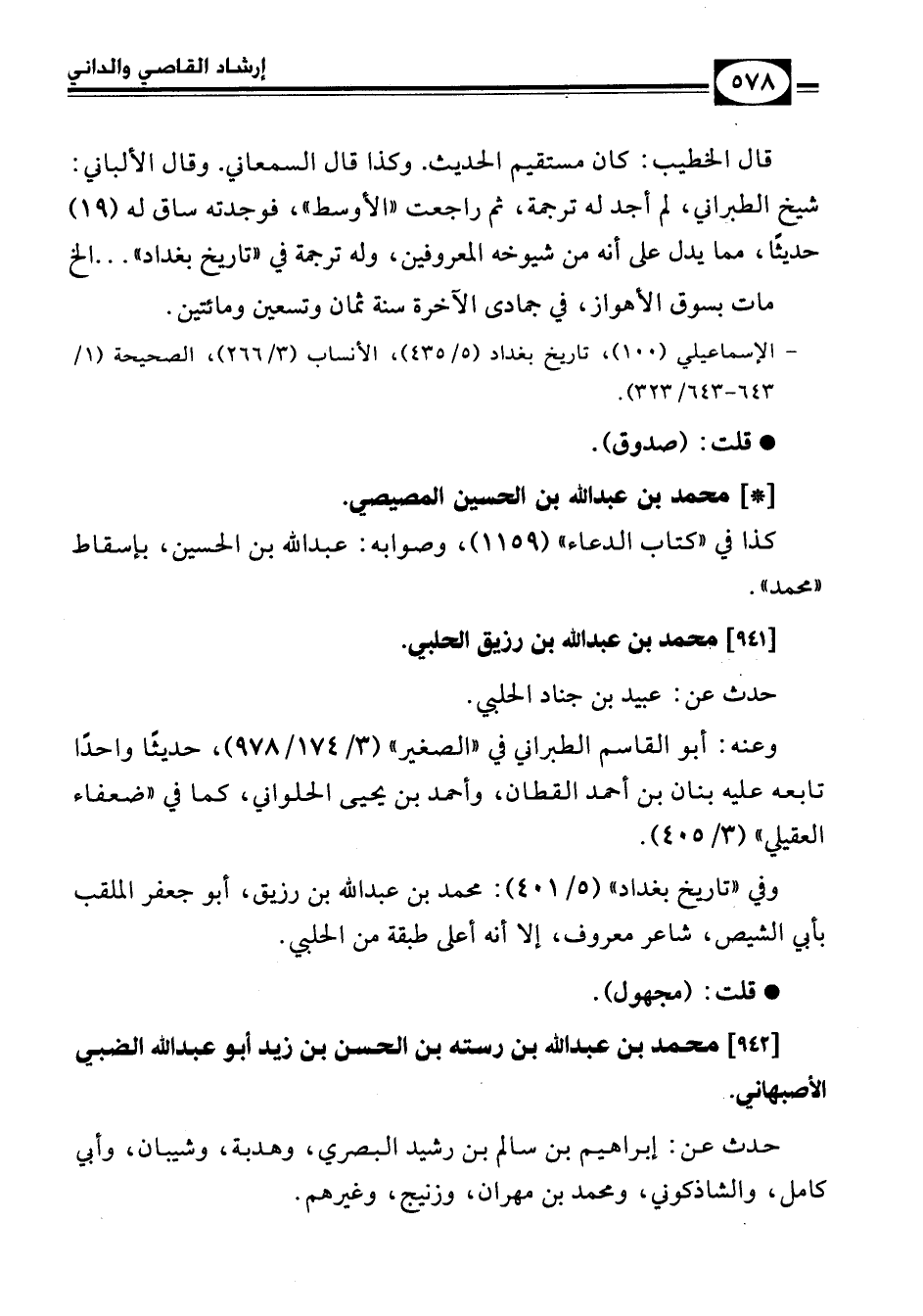 [942] محمد بن عبد الله بن رسته بن الحسن بن زيد أبو عبد الله الضبي الأصبهاني.