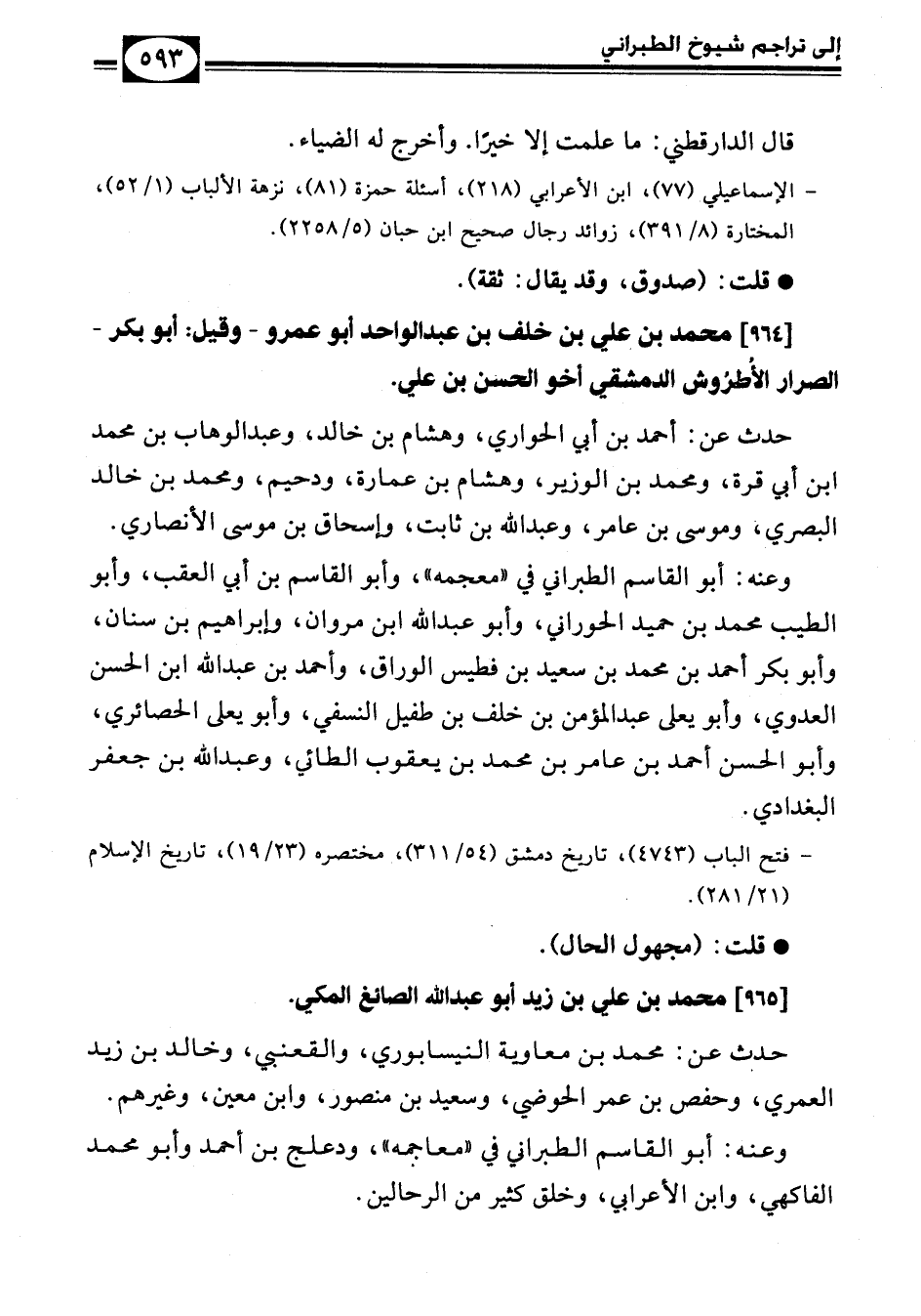 [964] محمد بن علي بن خلف بن عبد الواحد أبو عمرو – وقيل: أبو بكر – الصرار الأُطرُوش الدمشقي أخو الحسن بن علي.