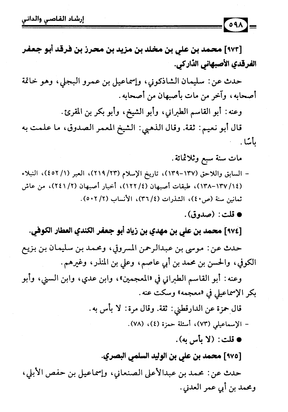 [973] محمد بن علي بن مخلد بن مزيد بن محرز بن فرقد أبو جعفر الفرقدي الأصبهاني الدَّاركي.