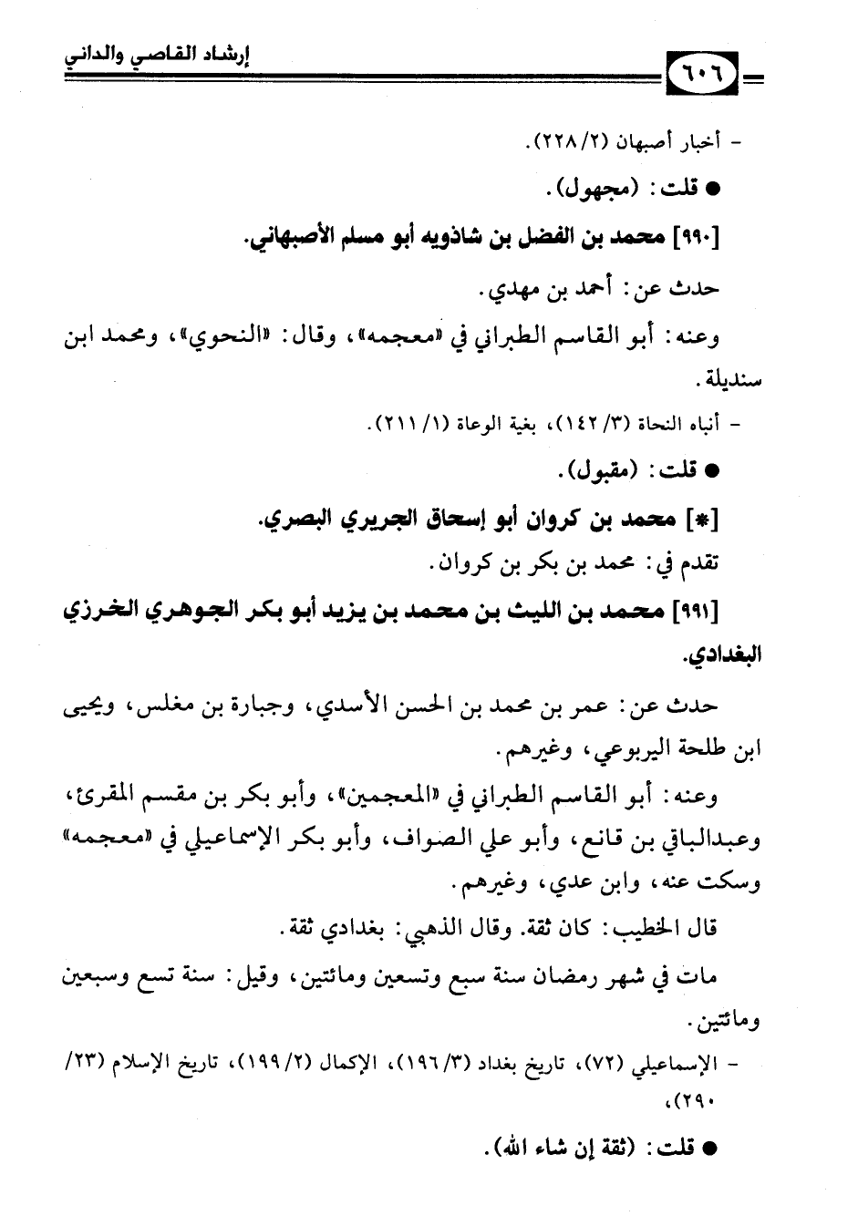 - الإسماعيلي (72)، تاريخ بغداد (3/ 196)، الإكمال (2/ 199)، تاريخ الإسلام (23/ 290).