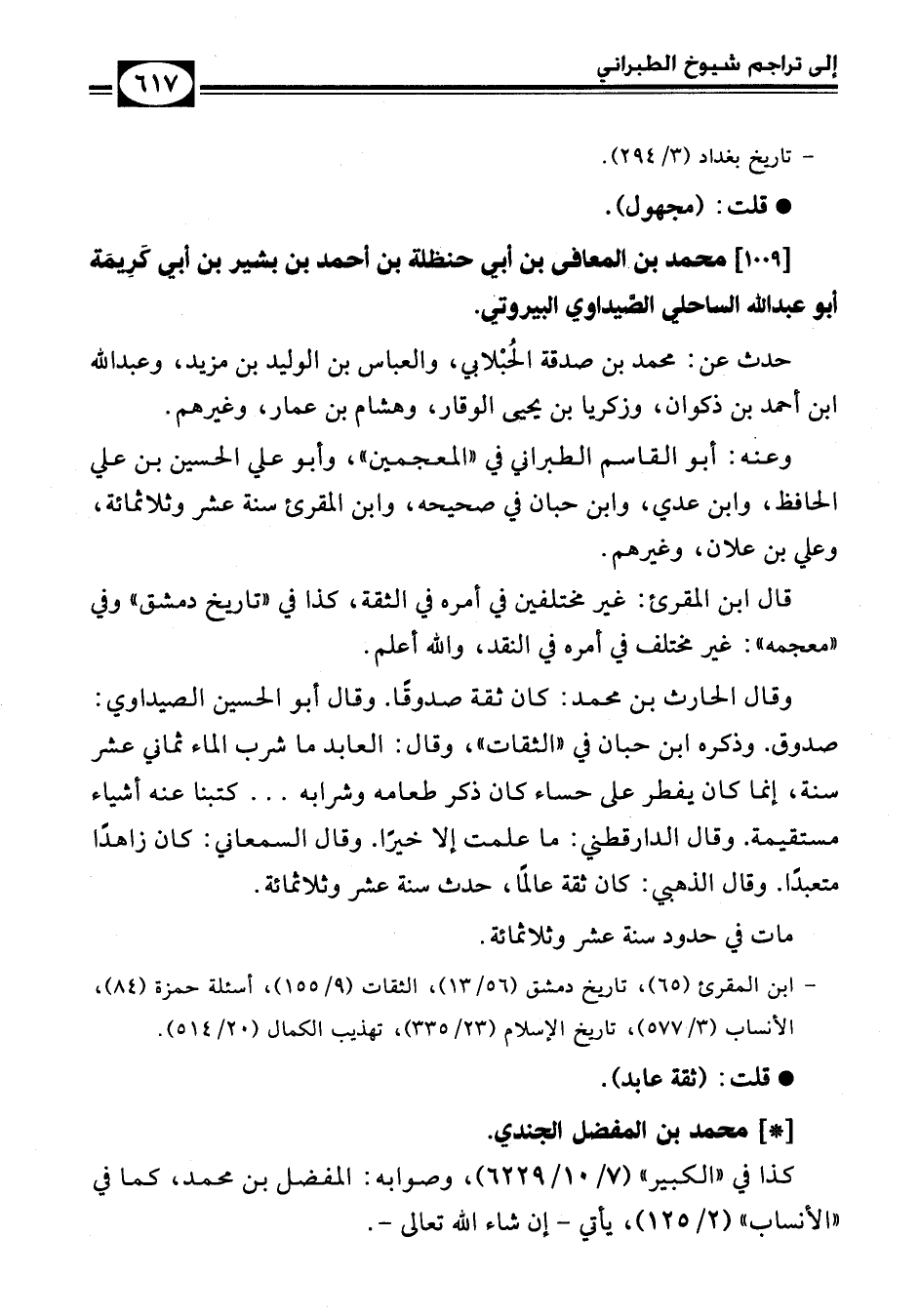 [1009] محمد بن المعافى بن أبي حنظلة بن أحمد بن بشير بن أبي كَرِيمَة أبو عبد الله الساحلي الصَّيداوي البيروتي.