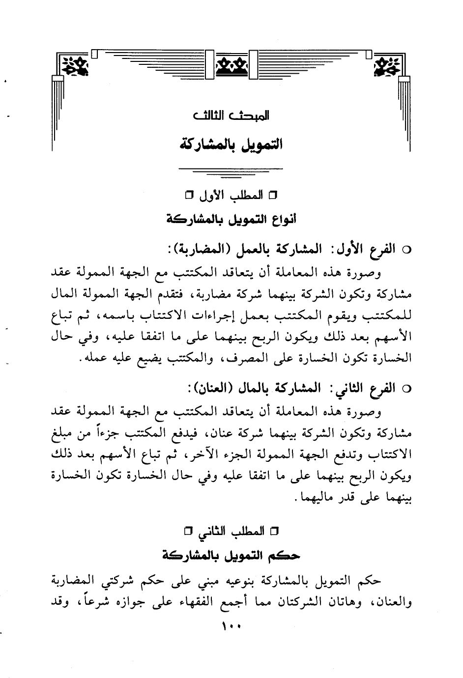الفرع الأول: المشاركة بالعمل (المضاربة):