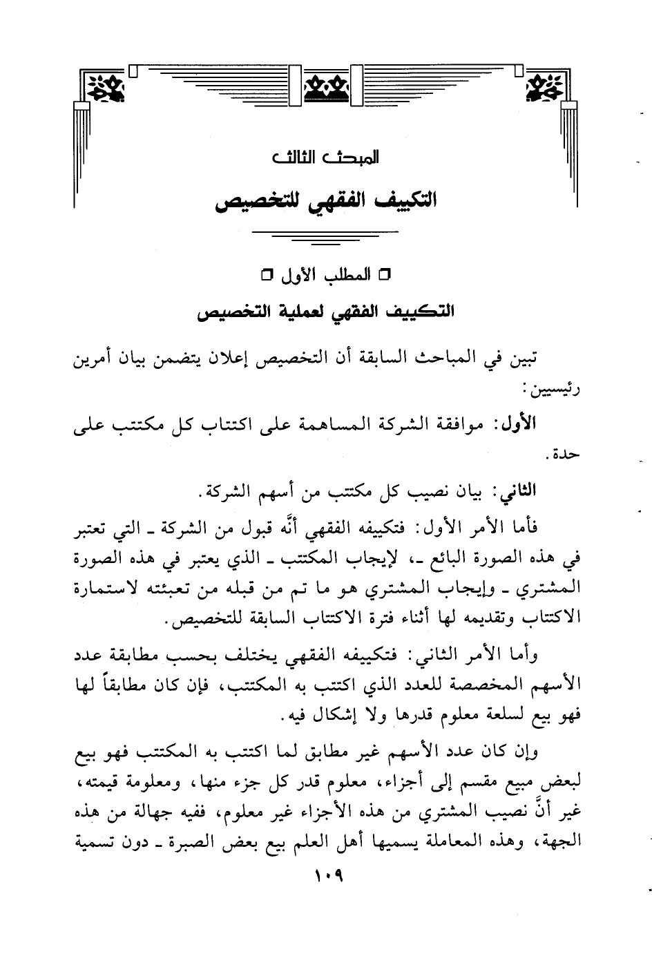 وأما الأمر الثاني: فتكييفه الفقهي يختلف بحسب مطابقة عدد الأسهم المخصصة لعدد الذي اكتتب به المكتتب، فإن كان مطابقاً لها فهو بيع لسلعة معلوم قدرها ولا إشكال فيه.