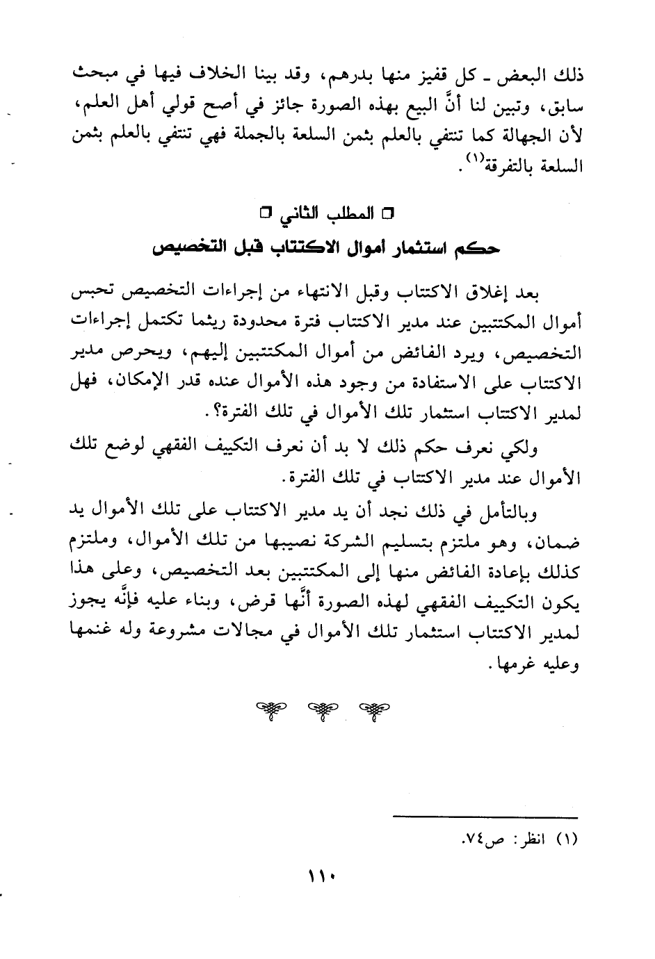 المطلب الثاني: حكم استثمار أموال الاكتتاب قبل التخصيص