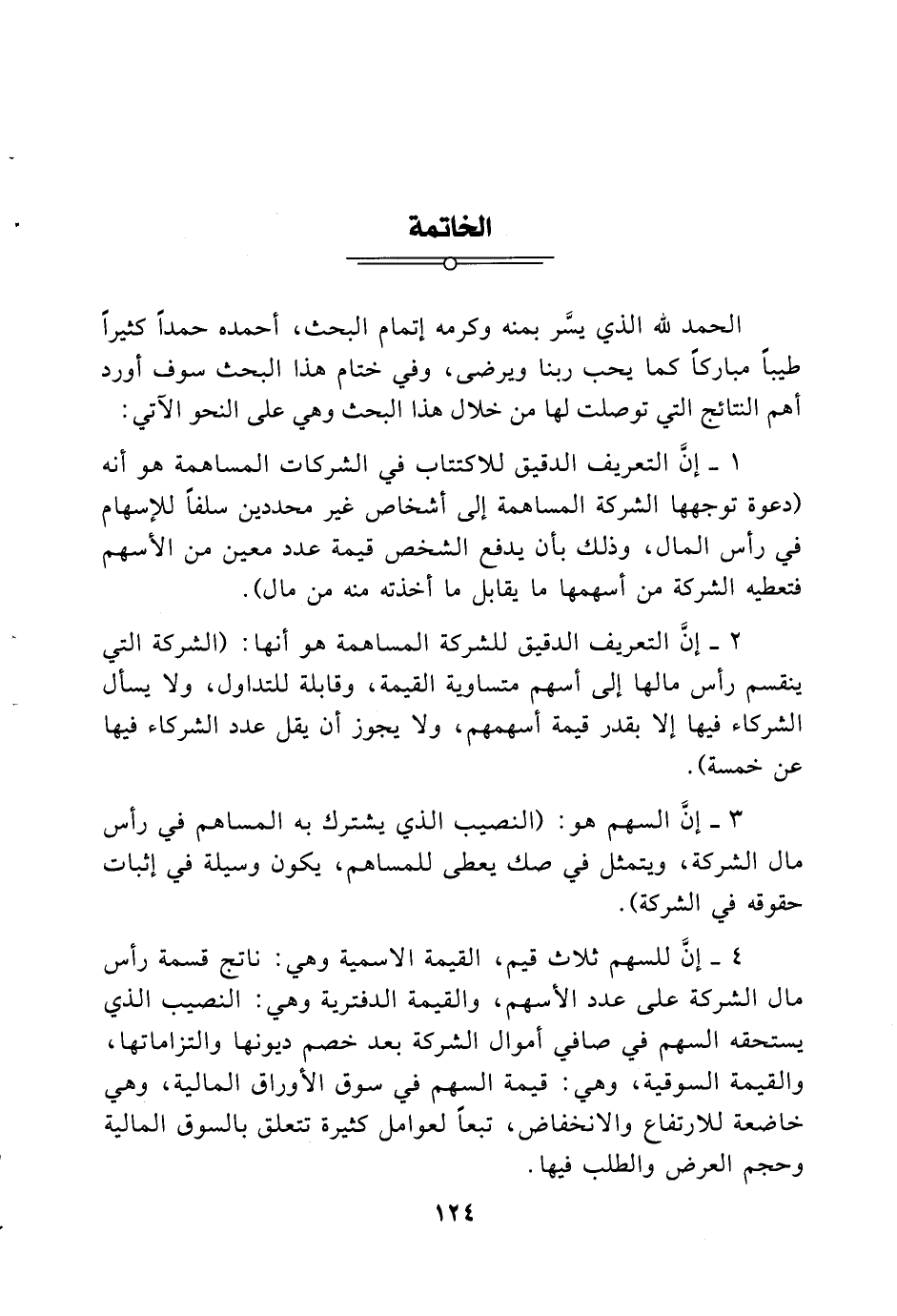 2 - إن التعريف الدقيق للشركة المساهمة هو أنها: (الشركة التي ينقسم رأس مالها إلى أسهم متساوية القيمة، وقابلة للتداول، ولا يسأل الشركاء فيها إلا بقدر قيمة أسهمهم، ولا يجوز أن يقل عدد الشركاء فيها عن خمسة).