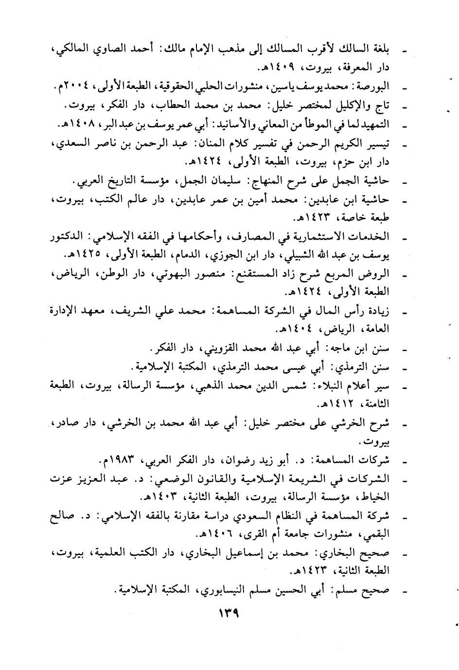 - الشركات في الشريعة الإسلامية والقانون الوضعي: د. عبد العزيز عزت الخياط، مؤسسة الرسالة، بيروت، الطبعة الثانية، 1403هـ.