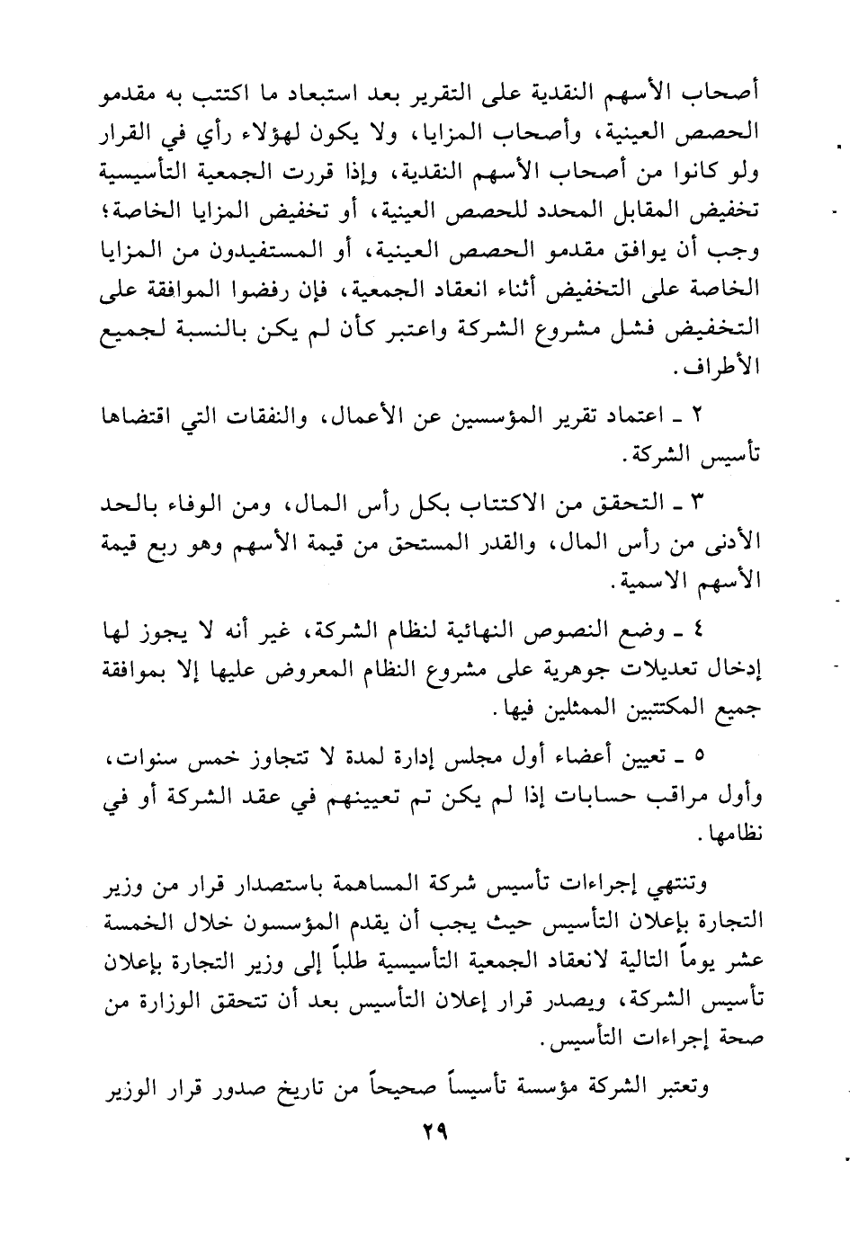 أصحاب الأسهم النقدية على التقرير بعد استبعاد ما اكتتب به مقدمو الحصص العينية، وأصحاب المزايا، ولا يكون لهؤلاء رأي في القرار ولو كانوا من أصحاب الأسهم النقدية، وإذا قررت الجمعية التأسيسية تخفيض المقابل المحدد للحصص العينية، أو تخفيض المزايا الخاصة، وجب أن يوافق مقدمو الحصص العينية، أو المستفيدون من المزايا الخاصة على التخفيض أثناء انعقاد الجمعية، فإن رفضوا الموافقة على التخفيض فشل مشروع الشركة واعتبر كأن لم يكن بالنسبة لجميع الأطراف.
