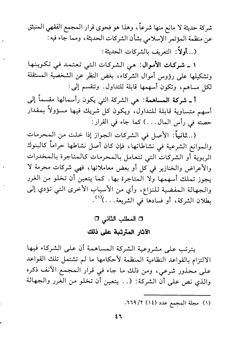 * ثانيا: الأصل في الشركات الجواز إذا خلت من المحرمات والموانع الشرعية في نشاطاتها، فإن كان أصل نشاطها حراما كالبنوك الربوية أو الشركات التي تتعامل بالمحرمات كالمتاجرة بالمخدرات والأعراض والخنازير في كل أو بعض معاملاتها، فهي شركات محرمة لا يجوز تملك أسهمها ولا المتاجرة بها. كما يتعين أن تخلو من الغرر والجهالة