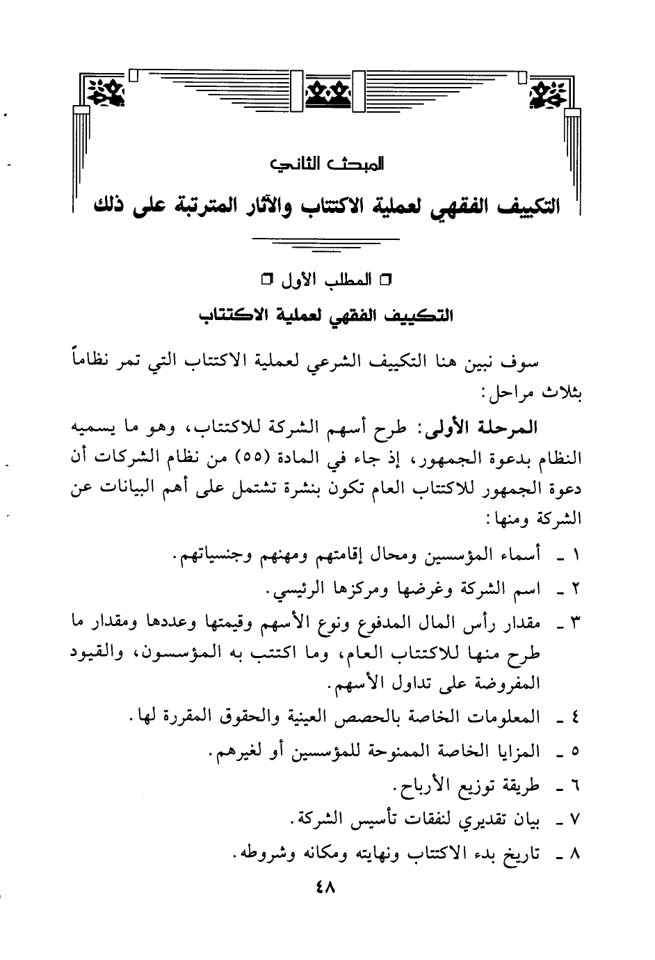 التكييف الفقهي لعملية الاكتتاب والآثار المترتبة على ذلك
