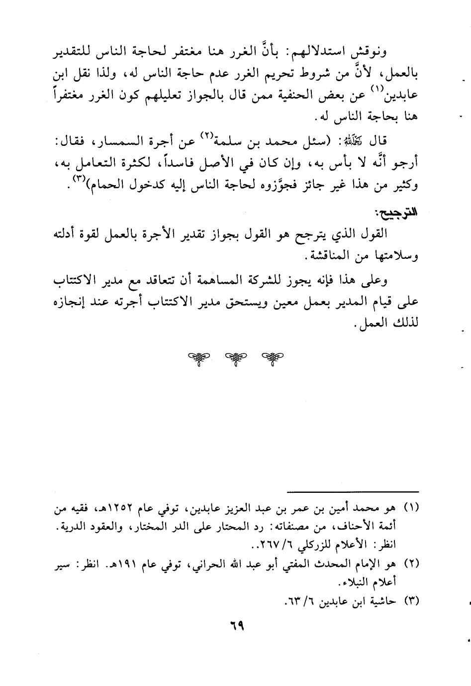 (¬1) هو محمد أمين بن عمر بن عبد العزيز عابدين، توفي عام 1252هـ، فقيه من أئمة الأحناف، من مصنفاته: رد المحتار على الدر المختار، والعقود الدرية. انظر: الأعلام للزركلي 6/ 267.