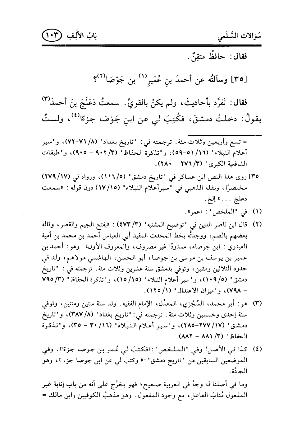35 - وسألتُه عن أحمدَ بنِ عُمَيرِ (¬1) بن جَوْصَا (¬2) ؟