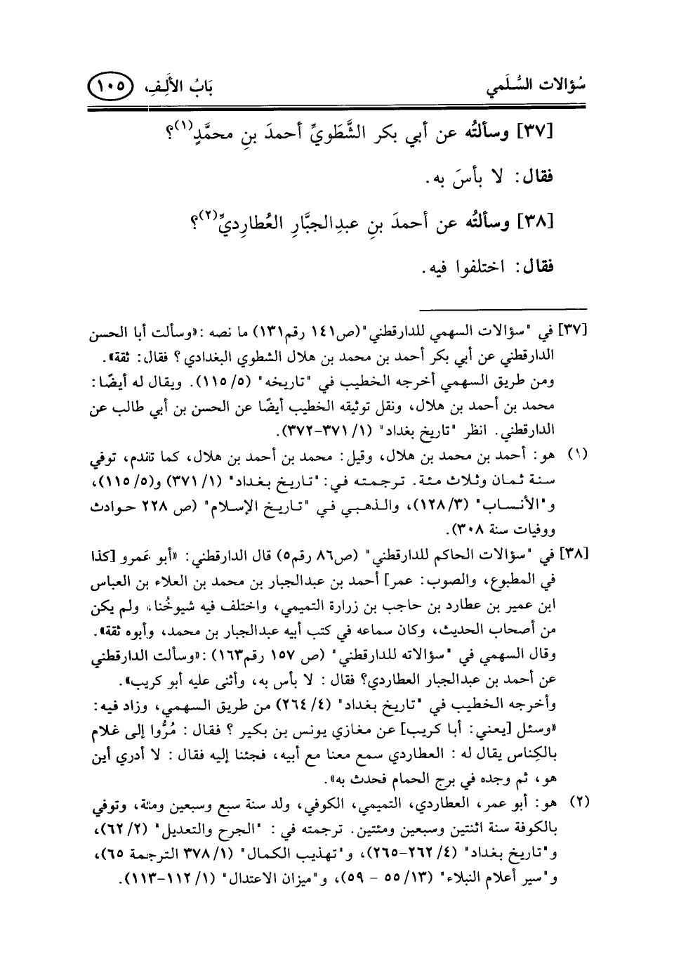38 - وسألتُه عن أحمدَ بنِ عبدِالجبَّارِ العُطارِديِّ (¬2) ؟