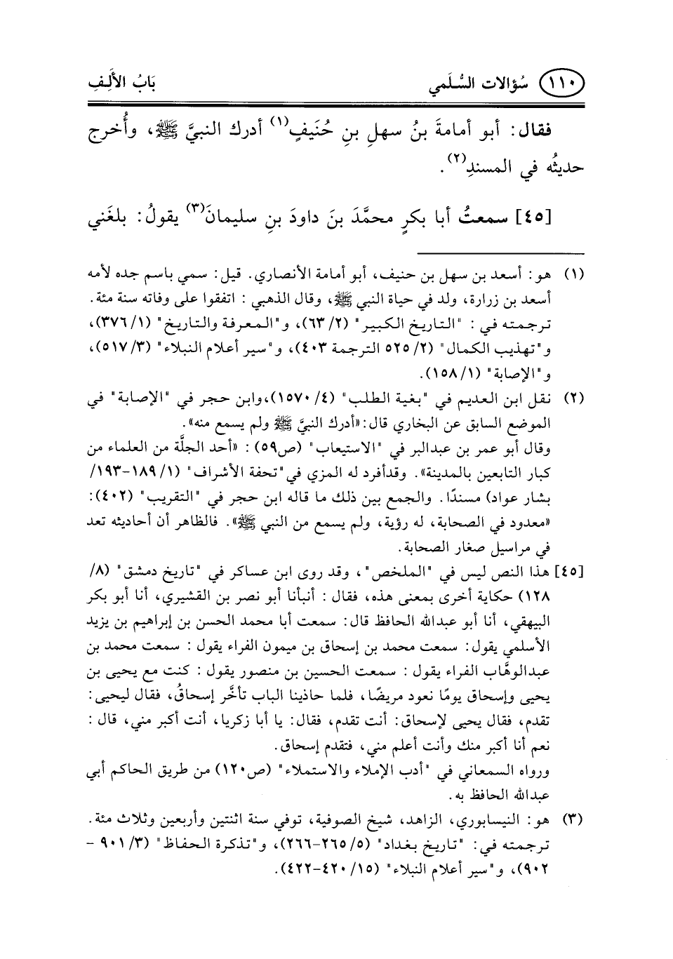 فقال: أبو أمامةَ بنُ سهلِ بنِ حُنَيفٍ (¬1) أدرك النبيَّ صلى الله عليه وسلم، وأُخرج حديثُه في المسندِ (¬2) .