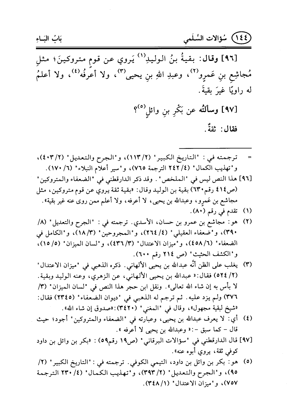 97 - وسألتُه عن بَكْرِ بنِ وائلٍ (¬5) ؟