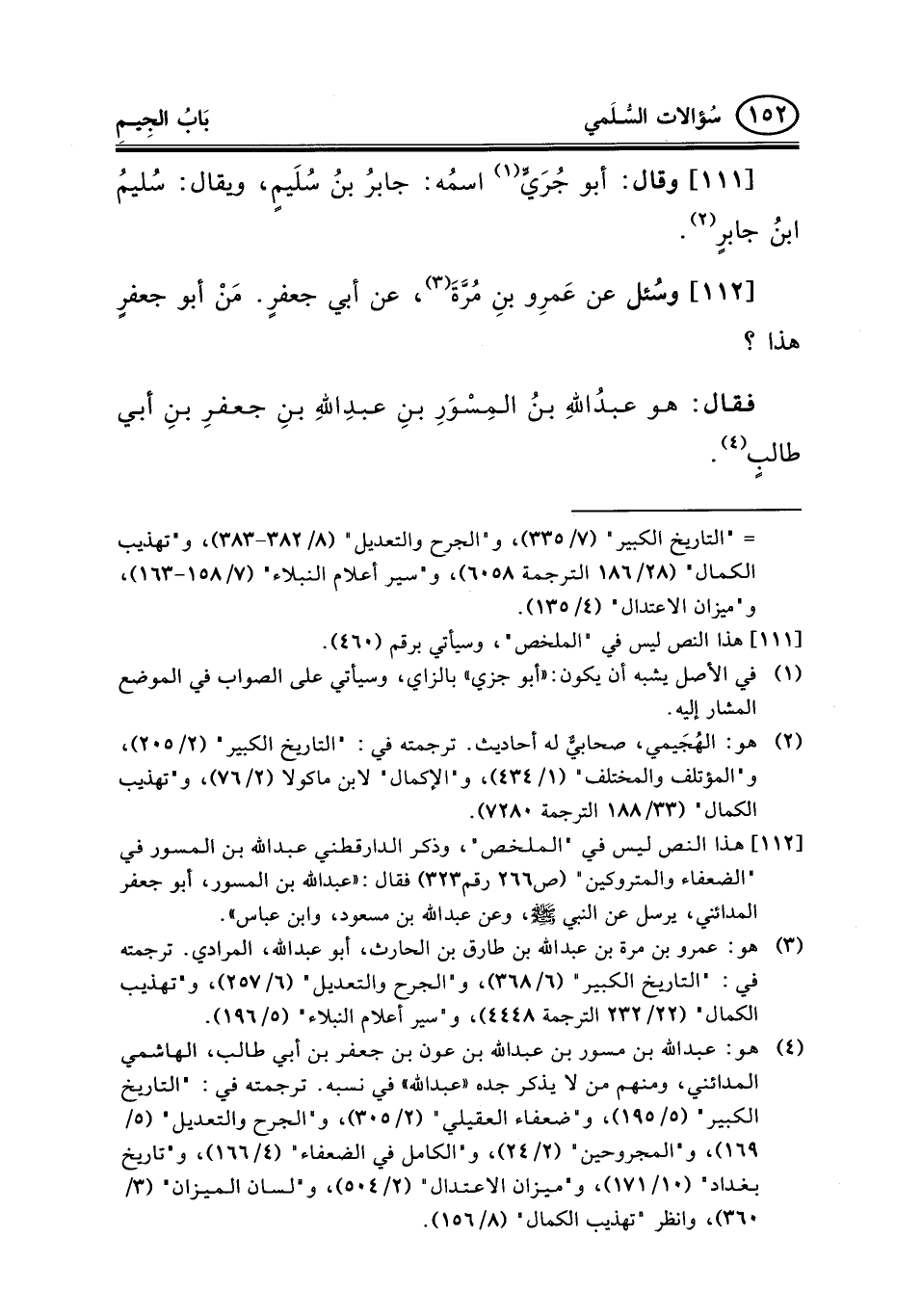 112 - وسُئل عن عَمرِو بنِ مُرَّةَ (¬3) ، عن أبي جعفرٍ. مَنْ أبو جعفرٍ هذا؟