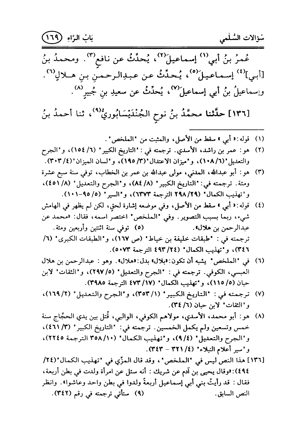 136 - حدَّثنا محمَّدُ بنُ نوحٍ الجُنْدَيْسَابُوريُّ (¬9) ، ثنا أحمدُ بنُ