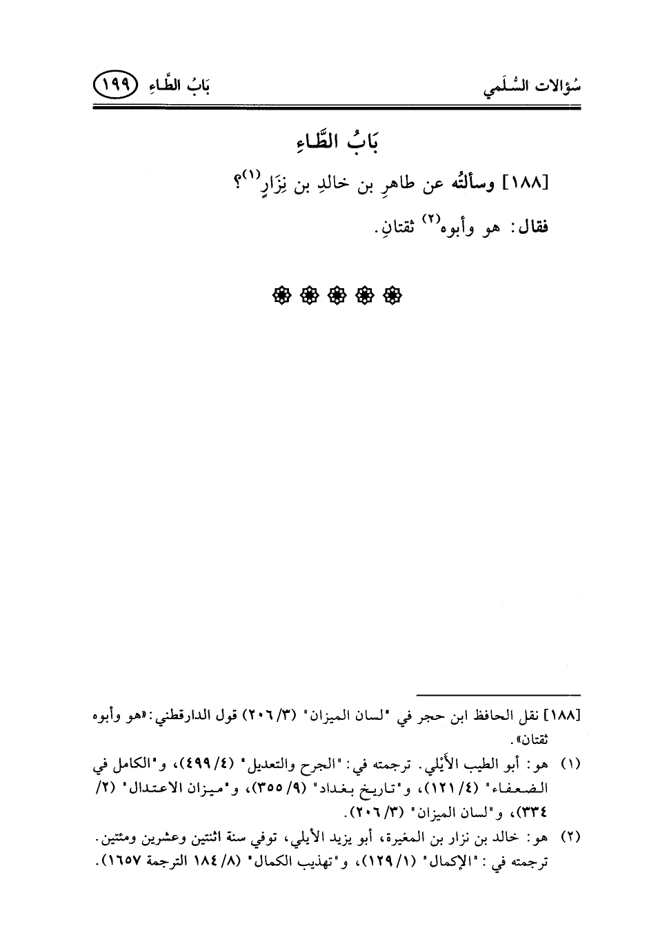 188 - وسألتُه عن طاهرِ بن خالدِ بن نِزَارٍ (¬1) ؟