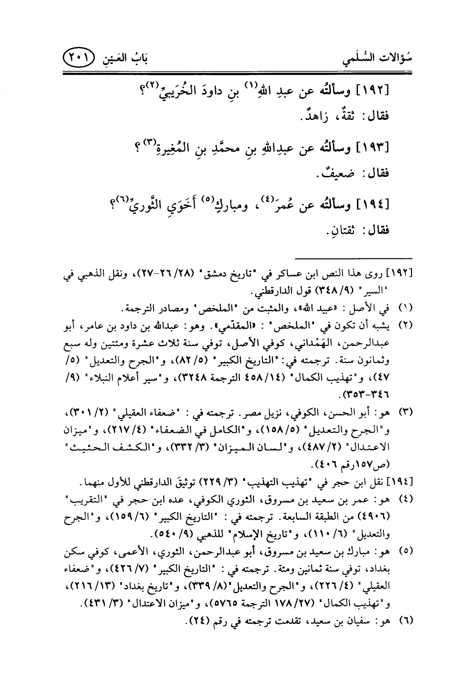 194 - وسألتُه عن عُمرَ (¬4) ، ومباركٍ (¬5) أَخَوَيِ الثَّوريِّ (¬6) ؟