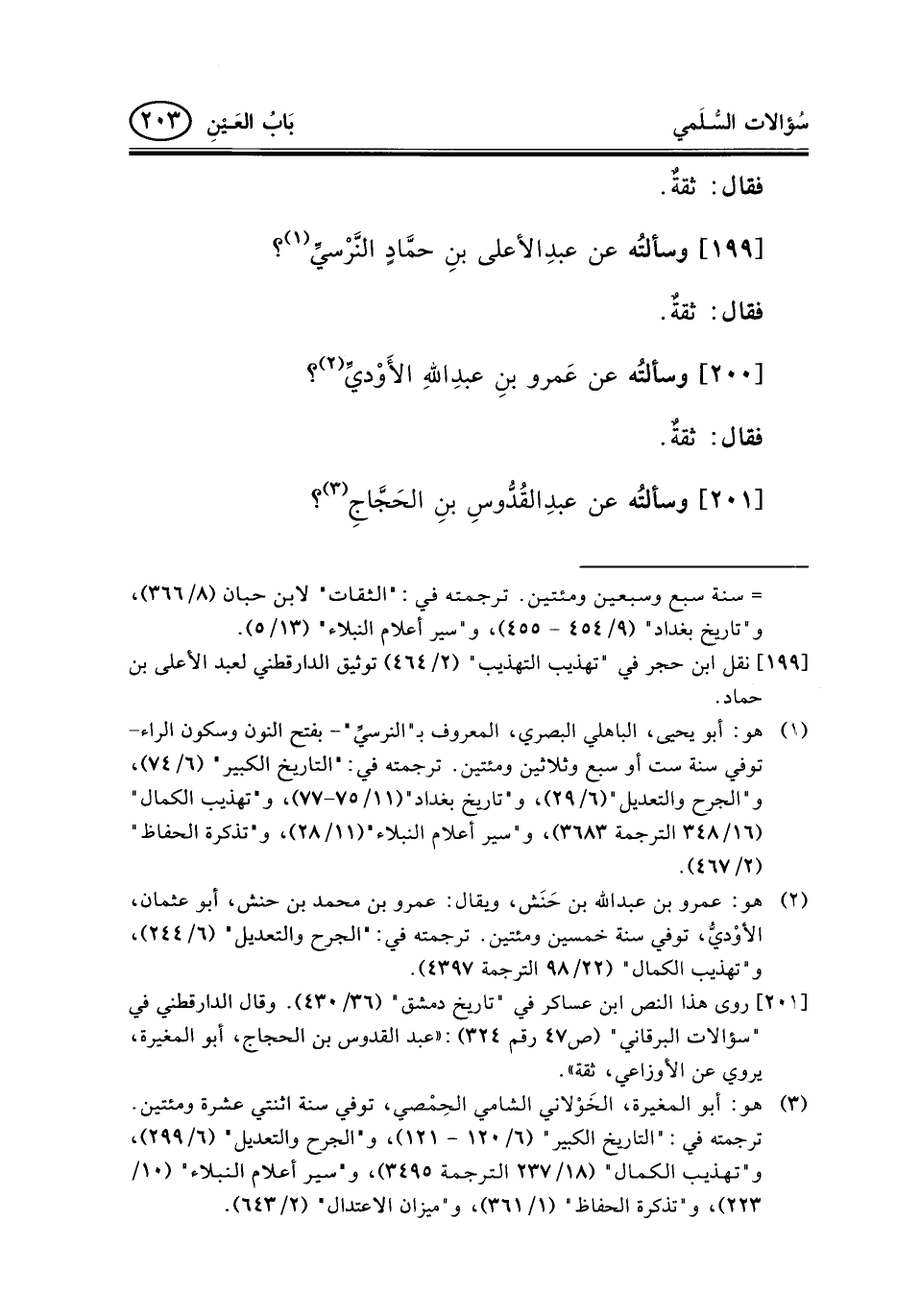 [199] نقل ابن حجر في "تهذيب التهذيب" (2/464) توثيق الدارقطني لعبد الأعلى بن حماد.