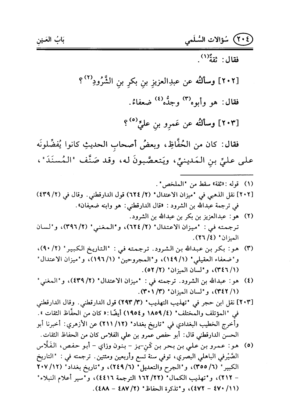 202 - وسألتُه عن عبدِالعزيزِ بنِ بكرِ بنِ الشَّرُودِ (¬2) ؟