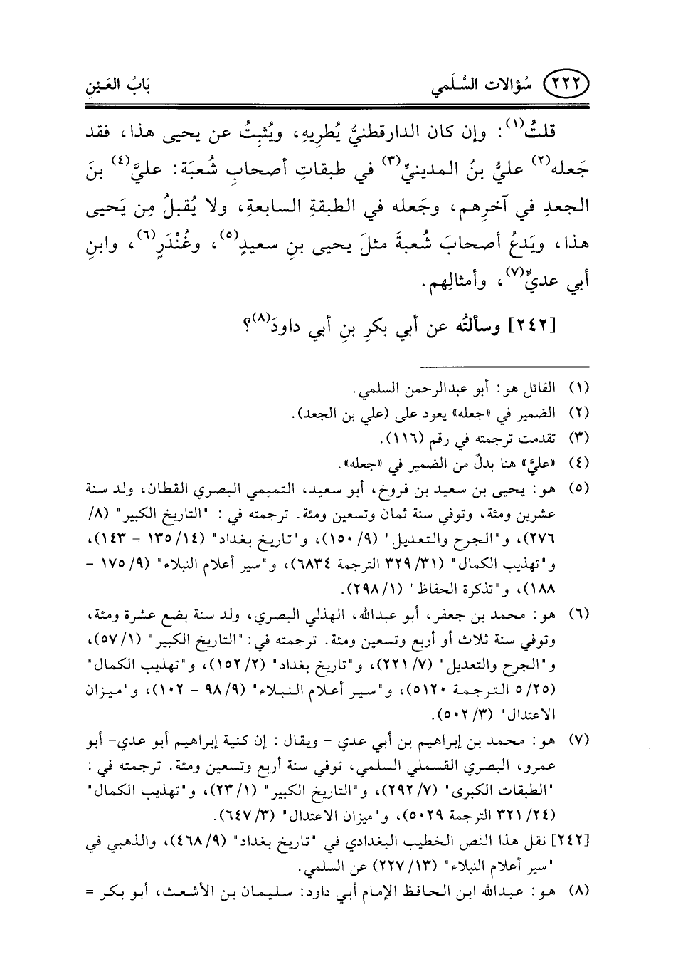 [242] نقل هذا النص الخطيب البغدادي في "تاريخ بغداد" (9/468) ، والذهبي في "سير أعلام النبلاء" (13/227) عن السلمي.