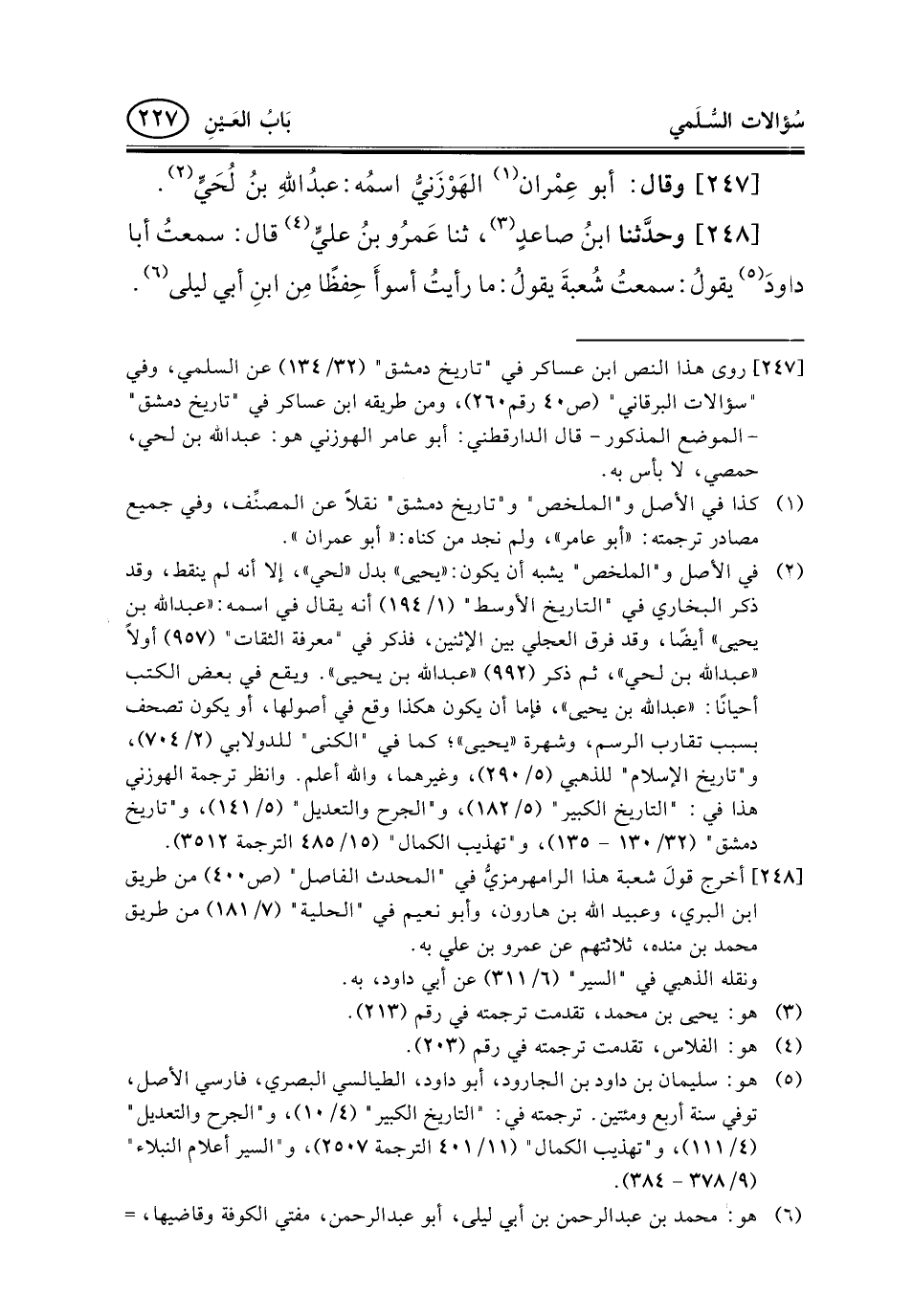 [247] روى هذا النص ابن عساكر في "تاريخ دمشق" (32/134) عن السلمي، وفي "سؤالات البرقاني" (ص40 رقم260) ، ومن طريقه ابن عساكر في "تاريخ دمشق"- الموضع المذكور- قال الدارقطني: أبو عامر الهوزني هو: عبد الله بن لحي، حمصي، لا بأس به.